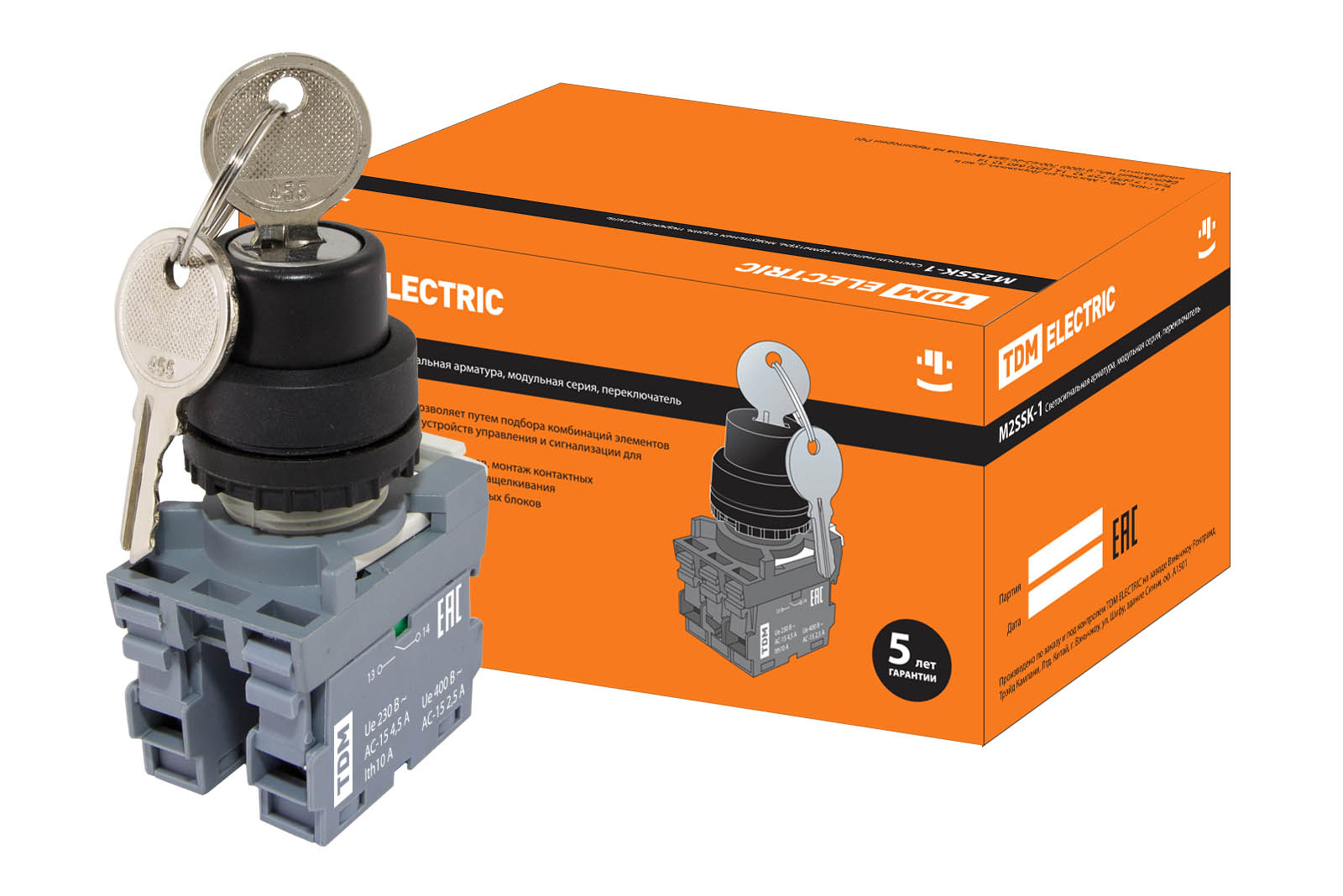 Переключатель с ключом на 2 положения с фиксацией M2SSК1-102 в сборе d22мм 1з+1р черный TDM доступен в интернет‑магазине ВольтМаркет в Орске. Покупая у нас, вы получаете дополнительные преимущества: