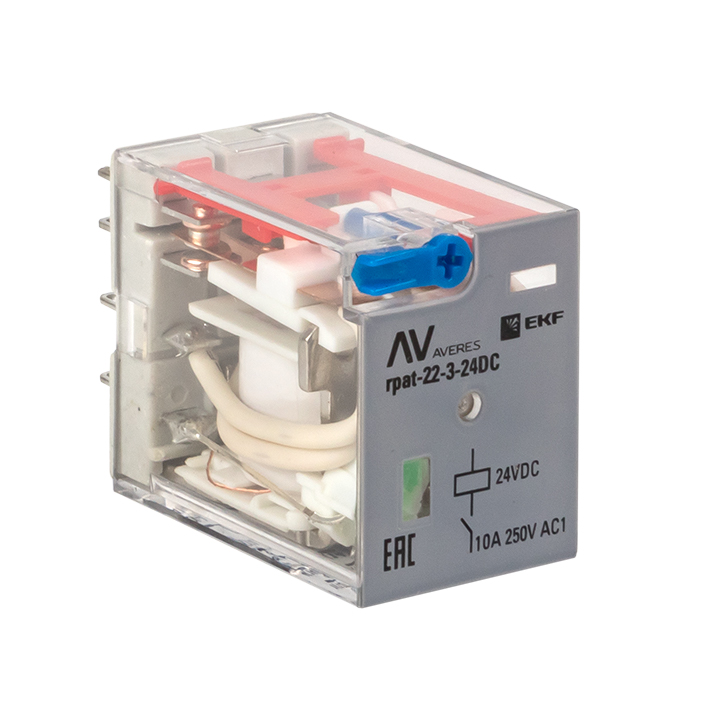 Реле промежуточное с кнопкой и мех, Индикацией RPAt 22/3 10A 24В DC AVERES EKF в Орске
