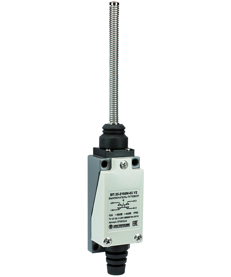Выключатель путевой ВП 25-2108М-65 У2, рычаг пружинный, 1з+1р, безинерционный, 21х56 мм, 3А, IP65 Электротехник доступен в интернет‑магазине ВольтМаркет в Орске. Покупая у нас, вы получаете дополнительные преимущества: