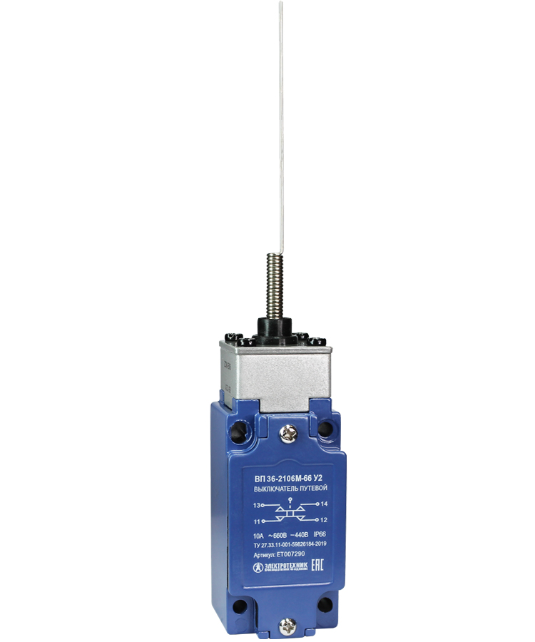Выключатель путевой ВП 36-2106М-66 У2, рычаг пружинный "кошачий ус", 1з+1р, безинерционный, 30х60 мм, без сальника, 3А, IP66 Электротехник доступен в интернет‑магазине ВольтМаркет в Орске. Покупая у нас, вы получаете дополнительные преимущества: