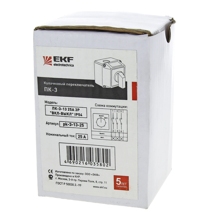 Переключатель кулачковый ПК-3-13 40А 3P "ВКЛ-ВЫКЛ" IP54 PROxima EKF доступен в интернет‑магазине ВольтМаркет в Орске. Покупая у нас, вы получаете дополнительные преимущества: