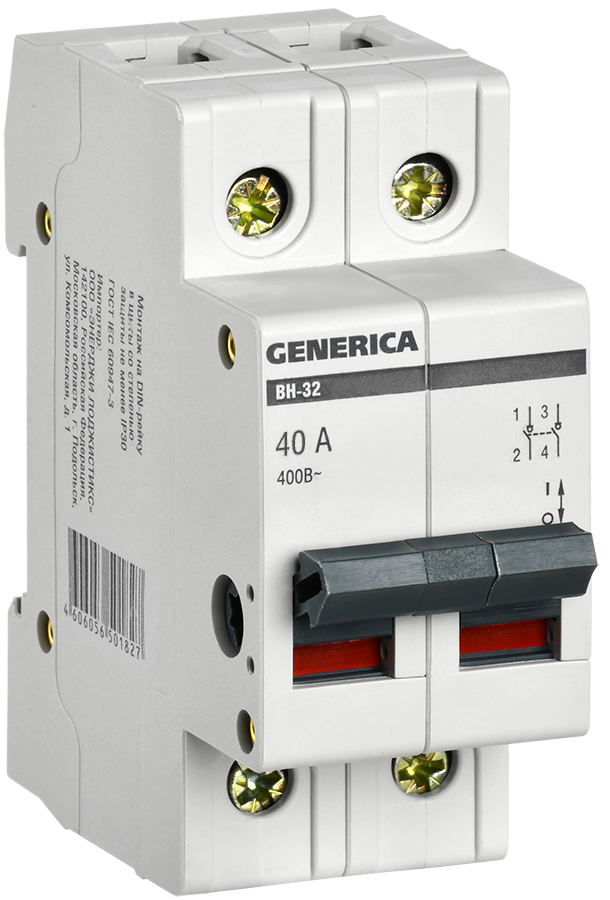 Выключатель нагрузки (мини-рубильник) ВН-32 2Р 40А GENERICA доступен в интернет‑магазине ВольтМаркет в Орске. Покупая у нас, вы получаете дополнительные преимущества: