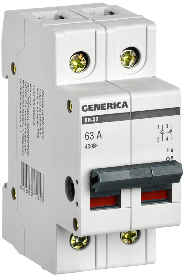 Выключатель нагрузки (мини-рубильник) ВН-32 2Р 63А GENERICA доступен в интернет‑магазине ВольтМаркет в Орске. Покупая у нас, вы получаете дополнительные преимущества: