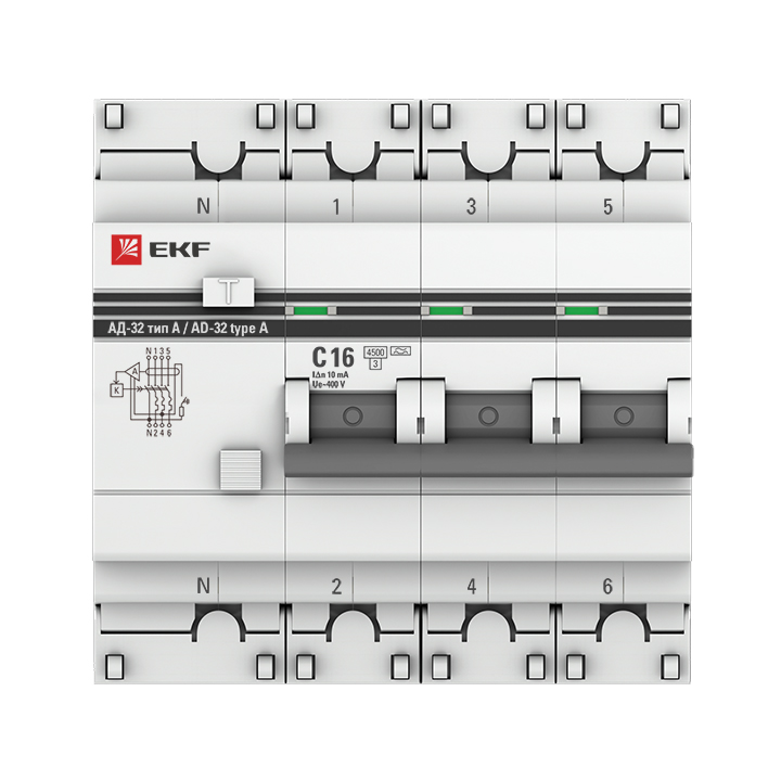 Дифференциальный автоматический выключатель АД-32 АВДТ 3П+N 16А С 4,5 10мА PROxima EKF в Орске