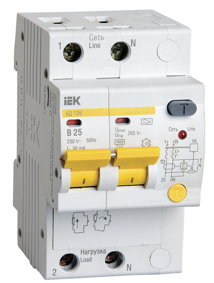 Дифференциальный автоматический выключатель АД12М 2П B 25А 30мА IEK в Орске
