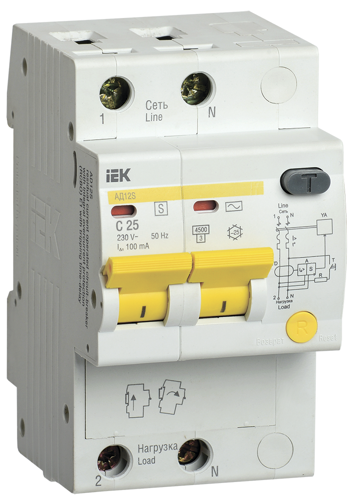 Дифференциальный автоматический выключатель АД12S 2П 25А 100мА IEK в Орске
