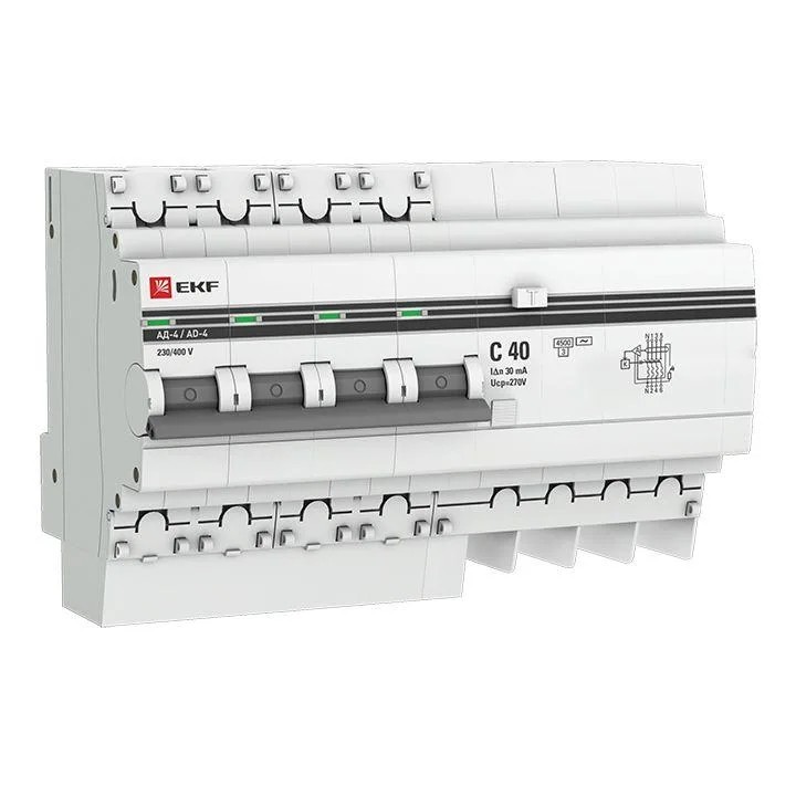 Дифференциальный автоматический выключатель АВДТ 4П 40А 30мА тип АС х-ка С эл. 270В 4,5кА АД-4 EKF в Орске
