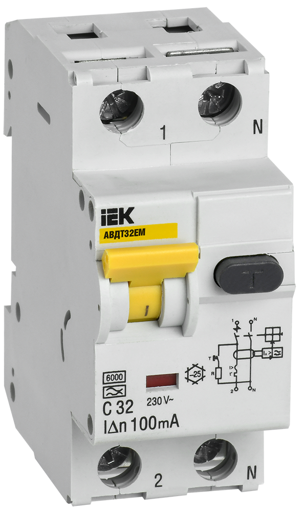 Дифференциальный автоматический выключатель АВДТ32EM 32А С 100мА IEK в Орске