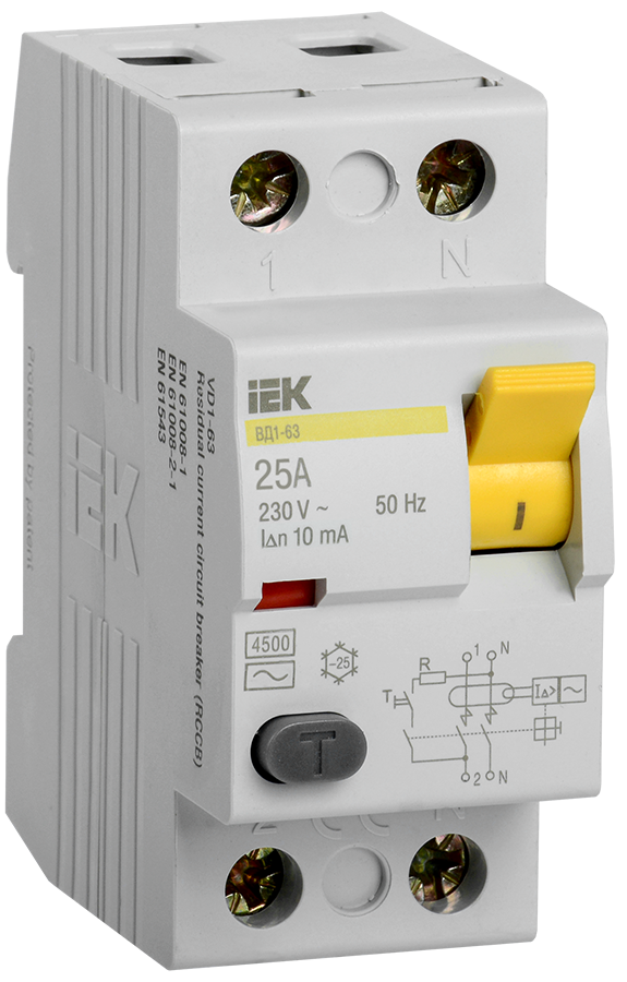 Устройство защитного отключения УЗО ВД1-63 2П 25А 10мА IEK в Орске