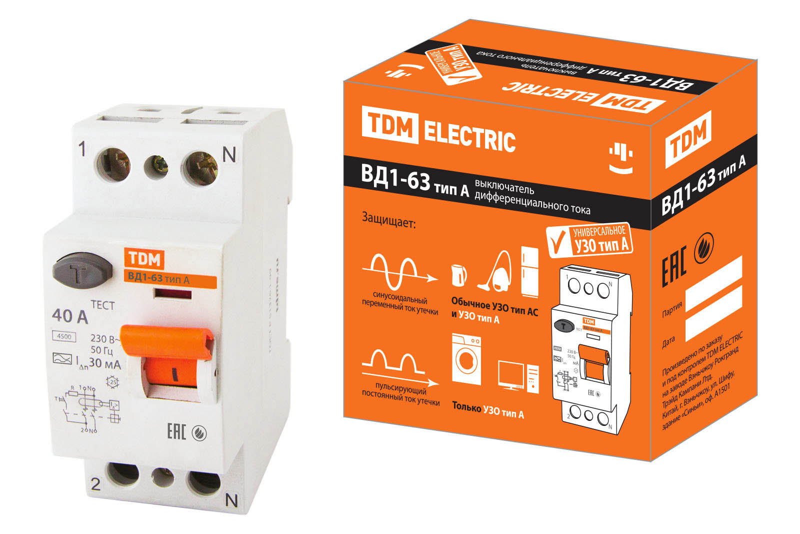 Устройство защитного отключения УЗО ВД1-63 2П 40А 30мА тип А TDM доступен в интернет‑магазине ВольтМаркет в Орске. Покупая у нас, вы получаете дополнительные преимущества: