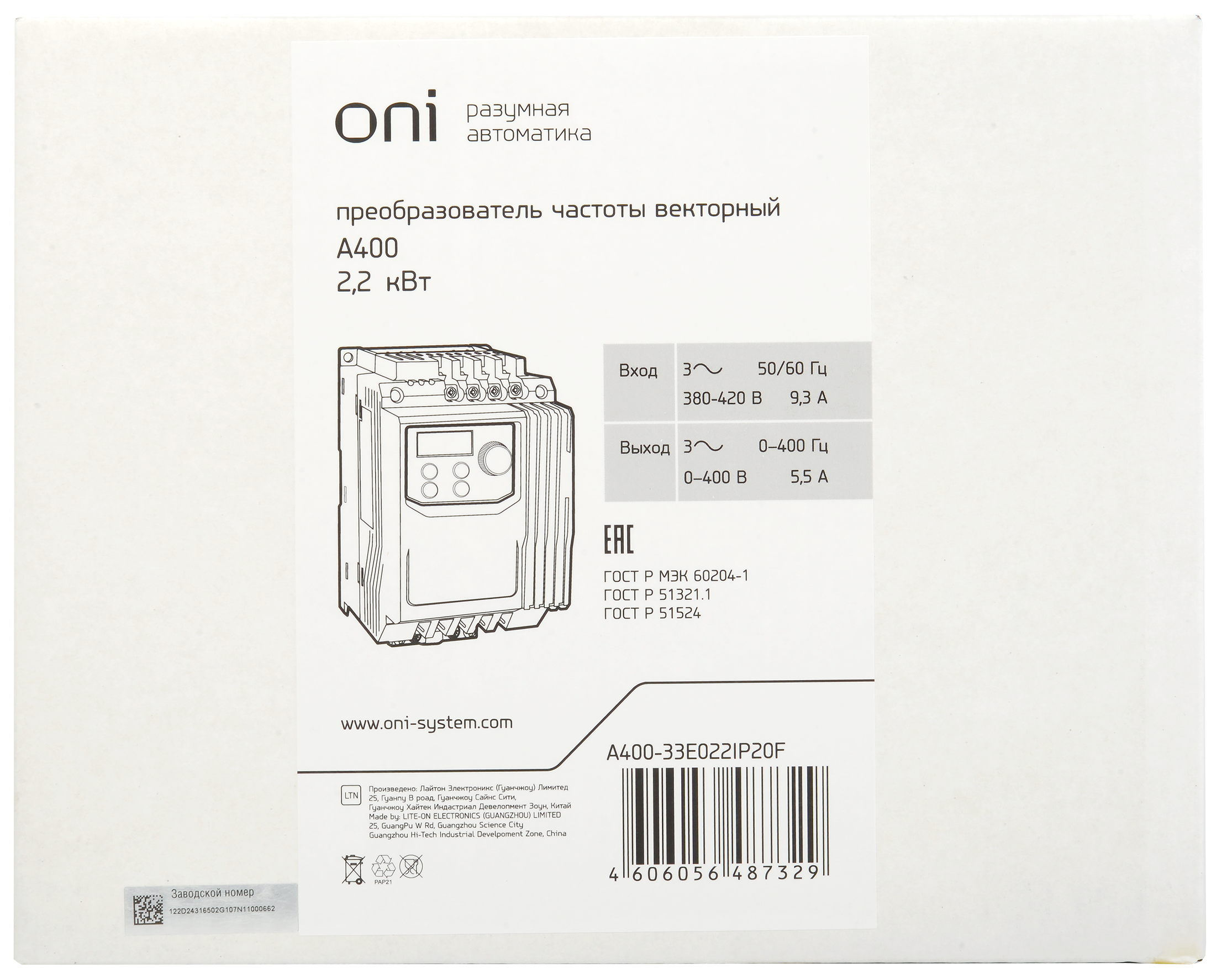 Преобразователь частоты A400 380В 3Ф 2,2кВт 5,5А серии ONI доступен в интернет‑магазине ВольтМаркет в Орске. Покупая у нас, вы получаете дополнительные преимущества: