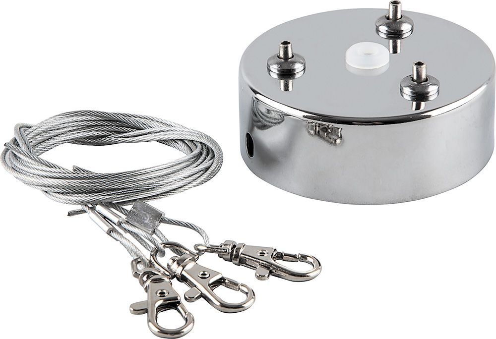 В комплектующие обычно входят крепежные элементы, подвесные тросы, декоративные накладки и розетки для подключения.
