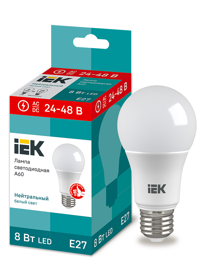 Лампа светодиодная A60 шар 8Вт 24-48В 4000К E27 IEK в Орске