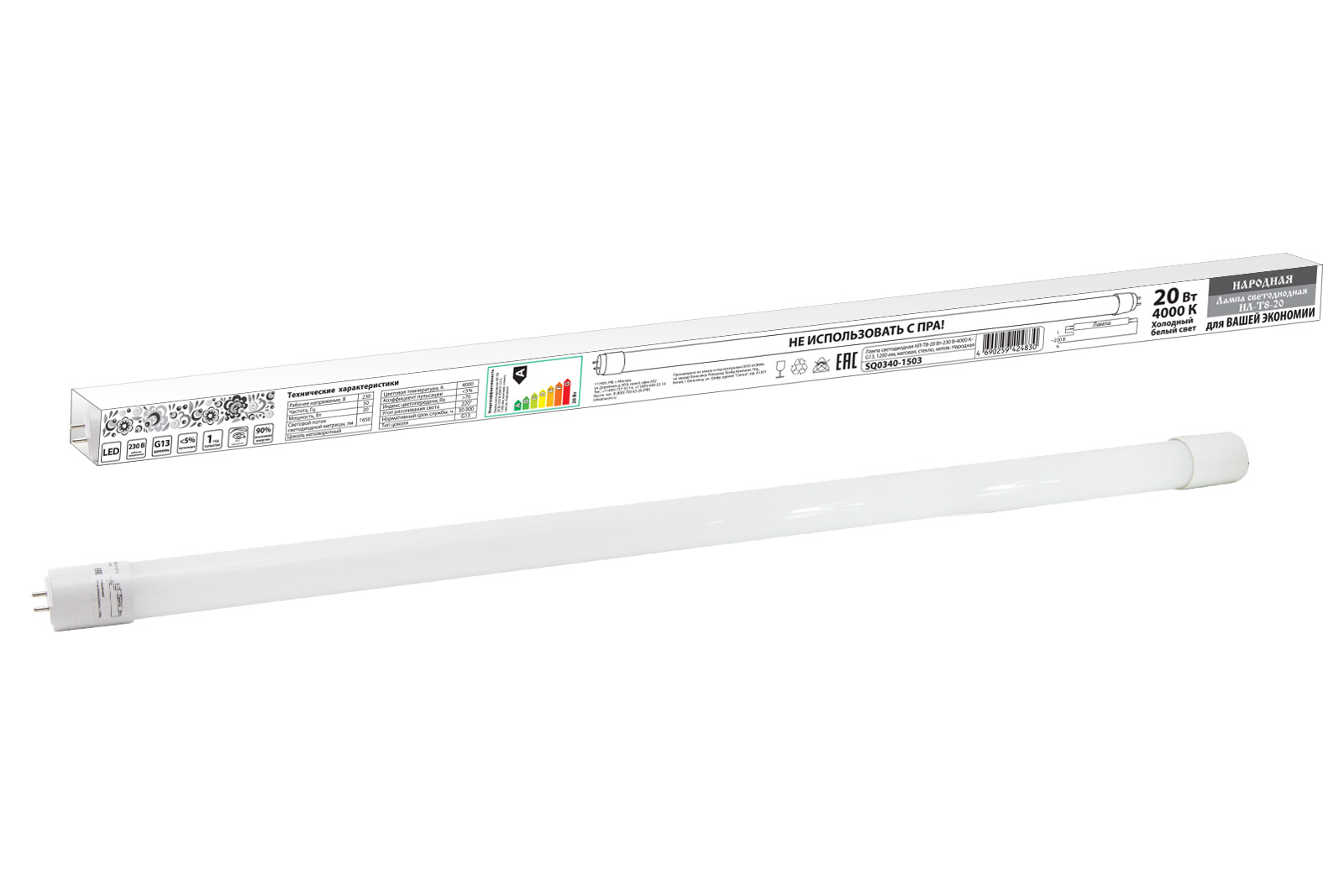 Лампа светодиодная НЛ-Т8-20 Вт-230 В-4000 К–G13, 1200 мм, матовая, стекло, непов. Народная TDM доступен в интернет‑магазине ВольтМаркет в Орске. Покупая у нас, вы получаете дополнительные преимущества: