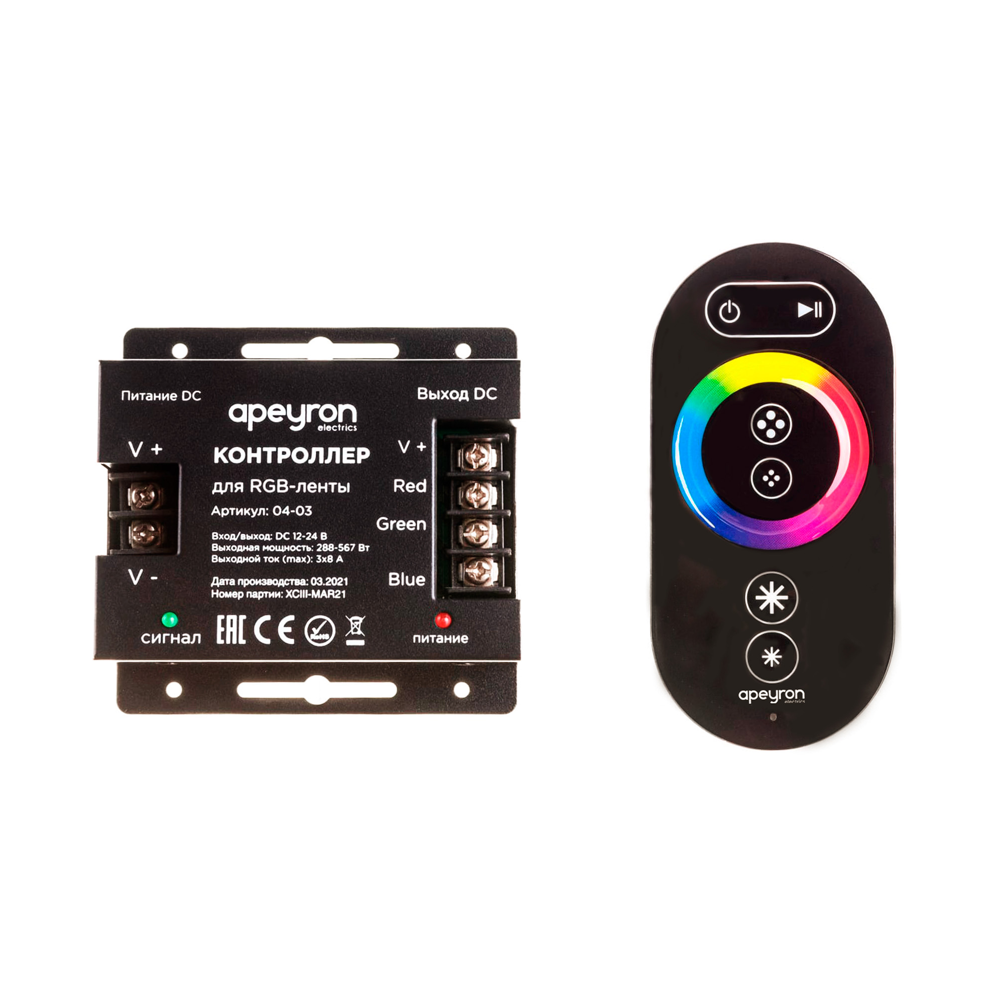 Контроллер RGB 12/24В, 288/576 Вт, 3 канала 8А, пульт сенсорный (без батареек) APEYRON доступен в интернет‑магазине ВольтМаркет в Орске. Покупая у нас, вы получаете дополнительные преимущества: