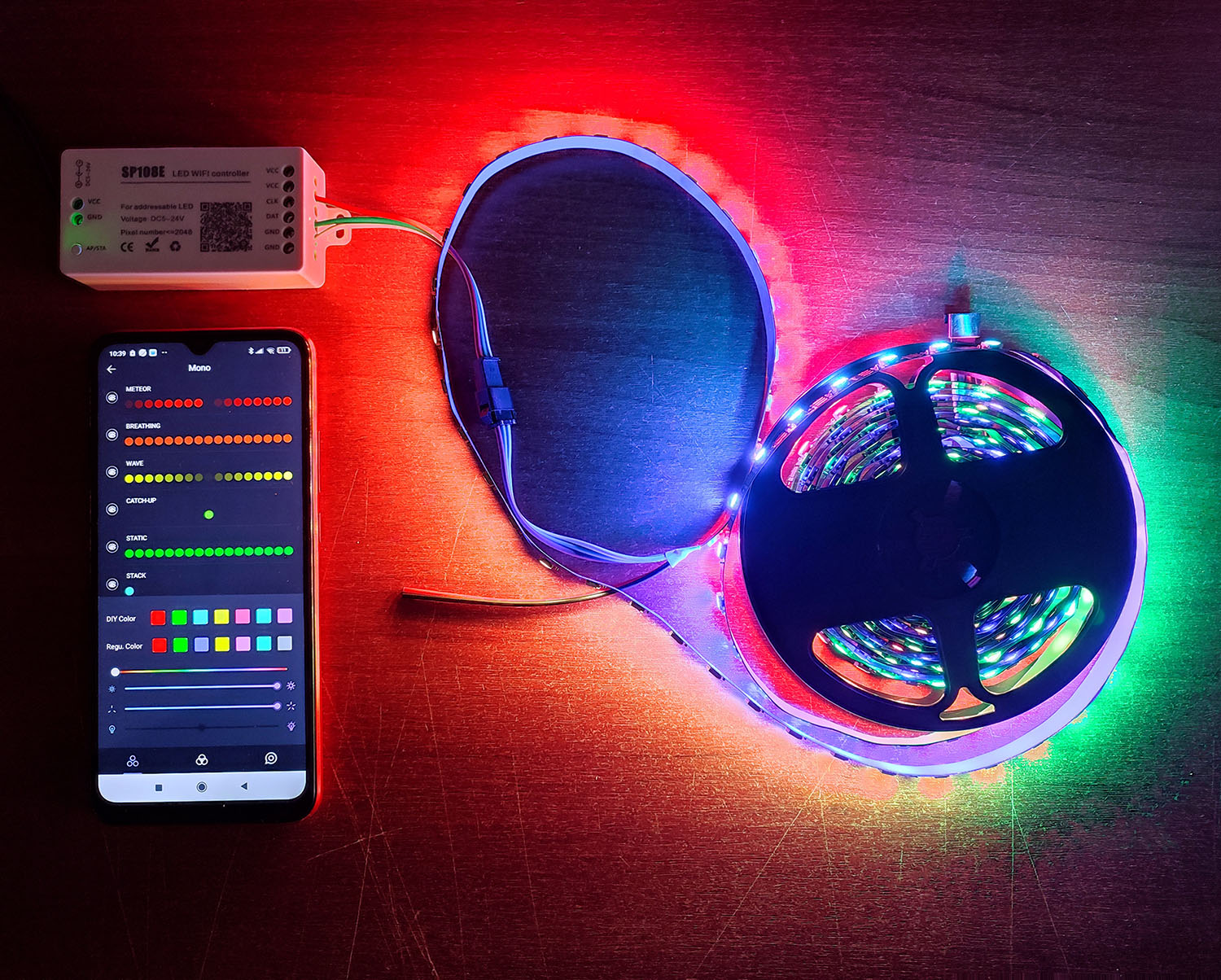 Многие современные контроллеры оснащены Wi-Fi или Bluetooth модулями, которые позволяют подключаться к ним через фирменные приложения. После установки приложения можно менять цвет, яркость и режимы работы прямо с телефона.