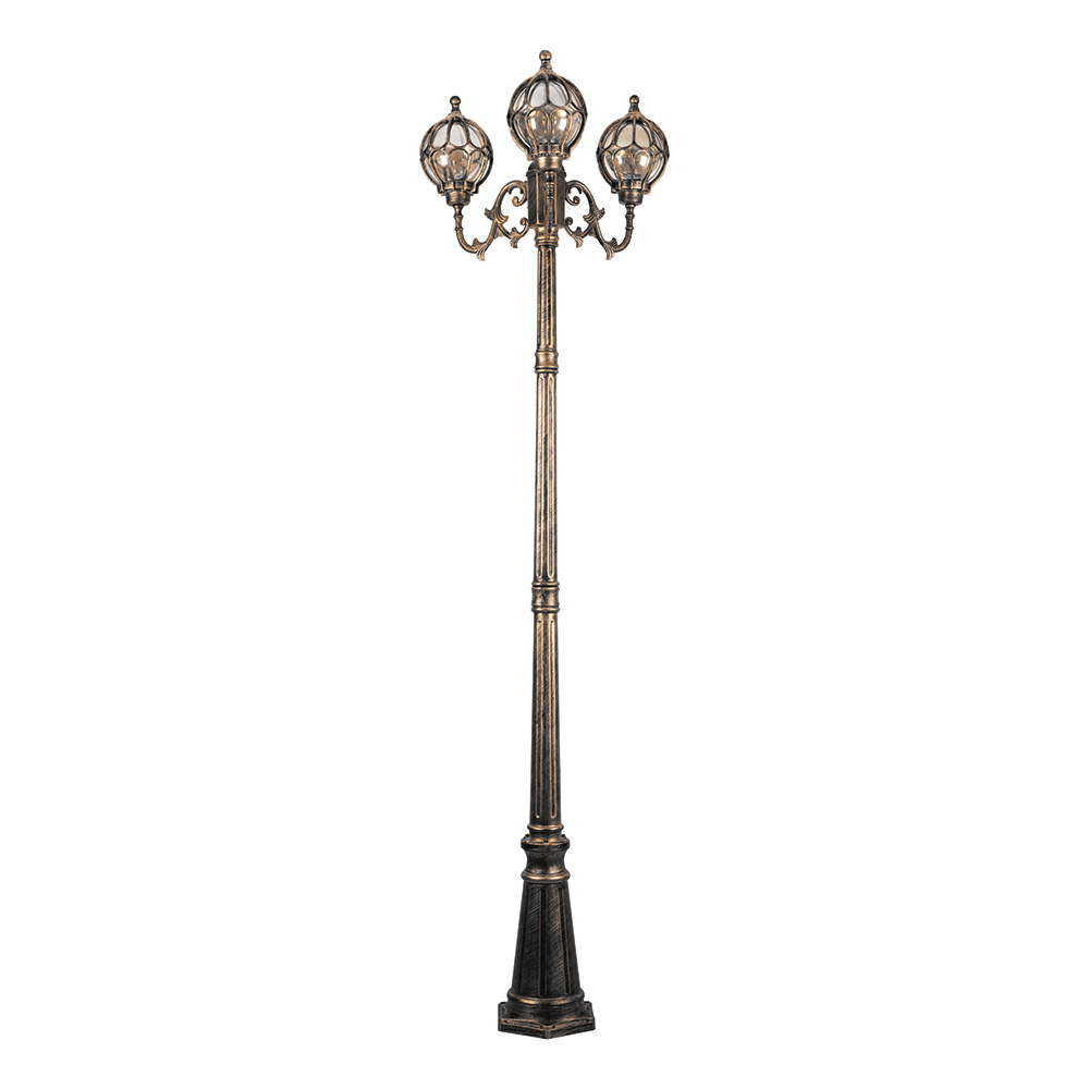 Светильник садово-парковый Feron PL3709 круглый, столб 3*60W 230V E27, черное золото в Орске