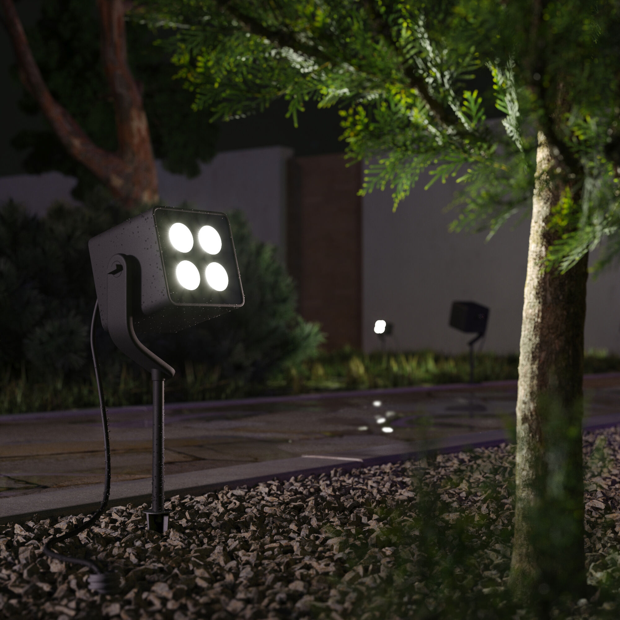 - Подсветку деревьев и кустарников