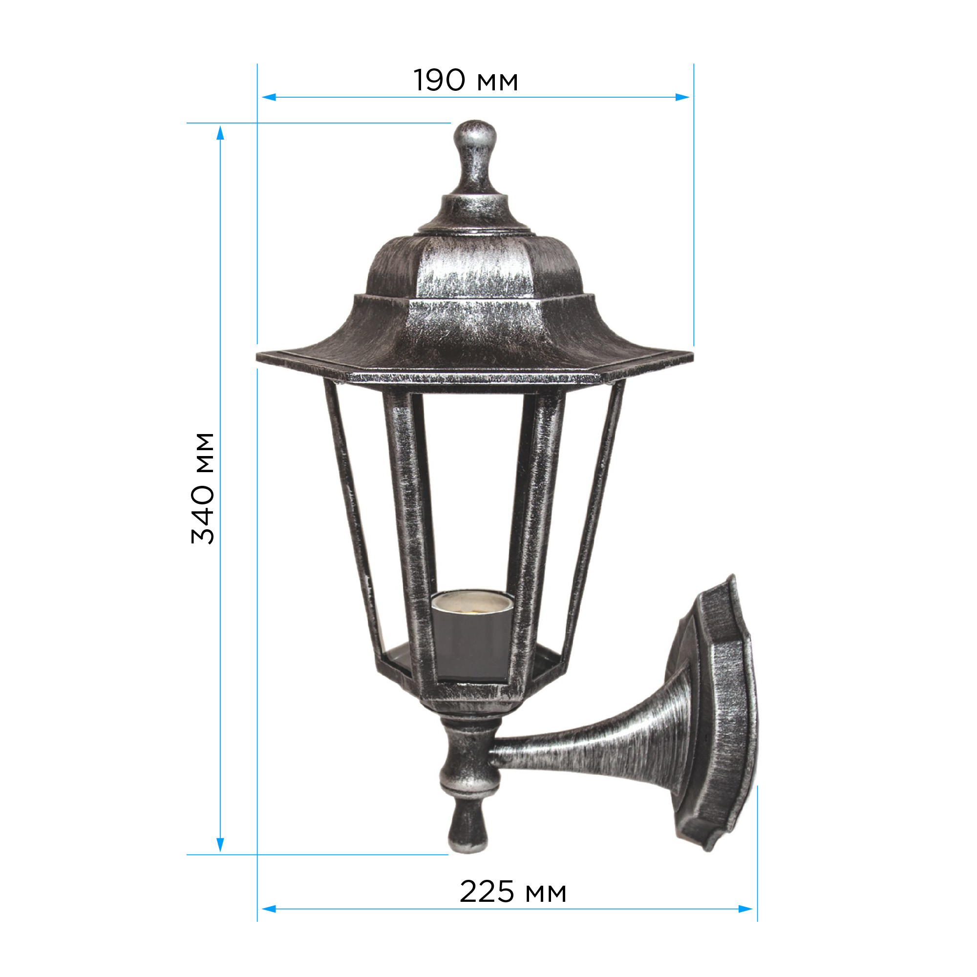 11-99 НБУ 06-60-001 ЛЕДА1 СЕР Светильник-фонарь настенный серебряный 6-гранный прозрачное стекло Apeyron в Орске