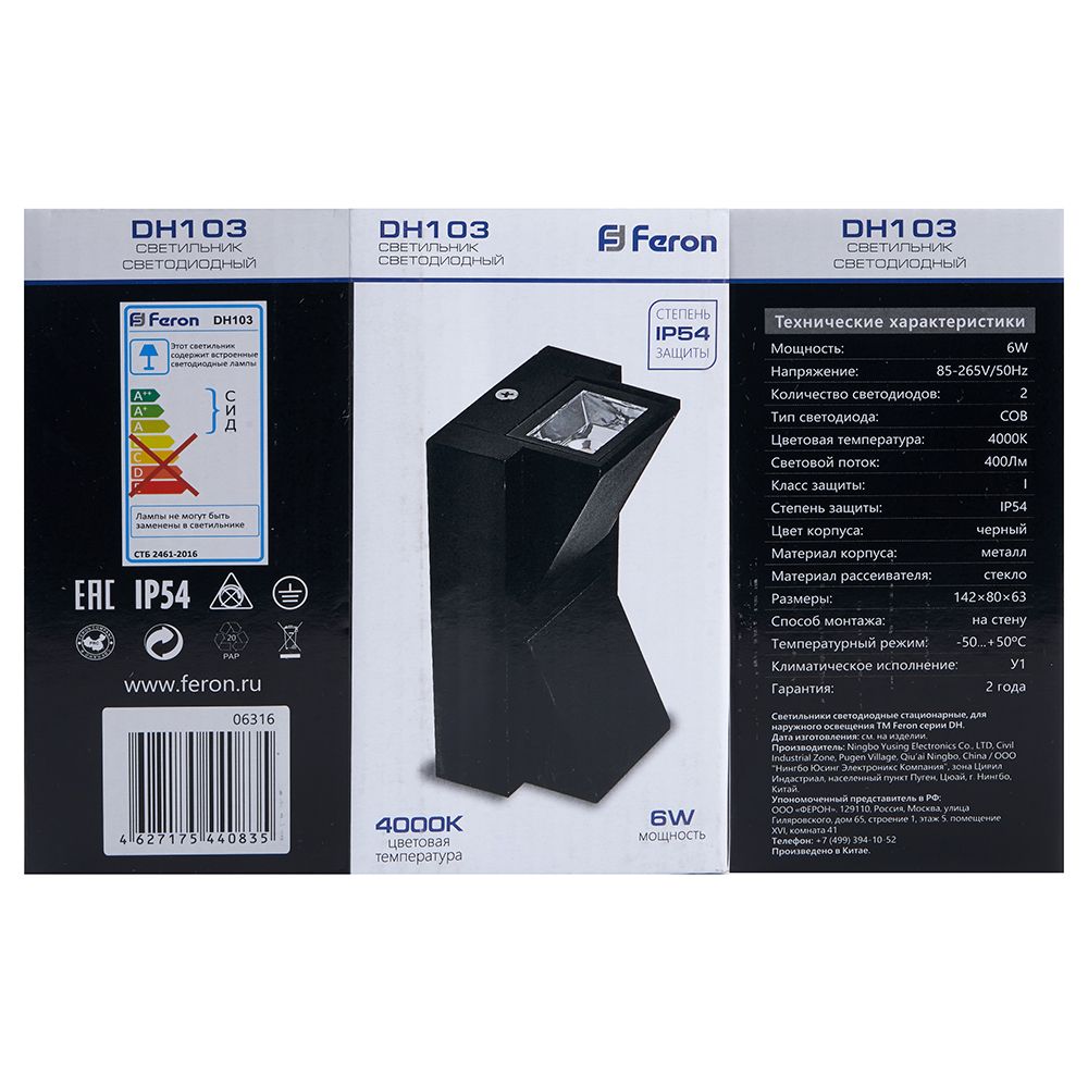 Светильник уличный светодиодный Feron DH103, 2*3W, 400Lm, 4000K, черный доступен в интернет‑магазине ВольтМаркет в Орске. Покупая у нас, вы получаете дополнительные преимущества: