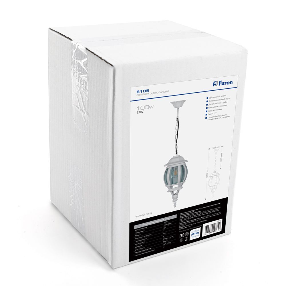Светильник садово-парковый Feron 8105/PL8105 восьмигранный на цепочке 100W E27 230V, белый в Орске