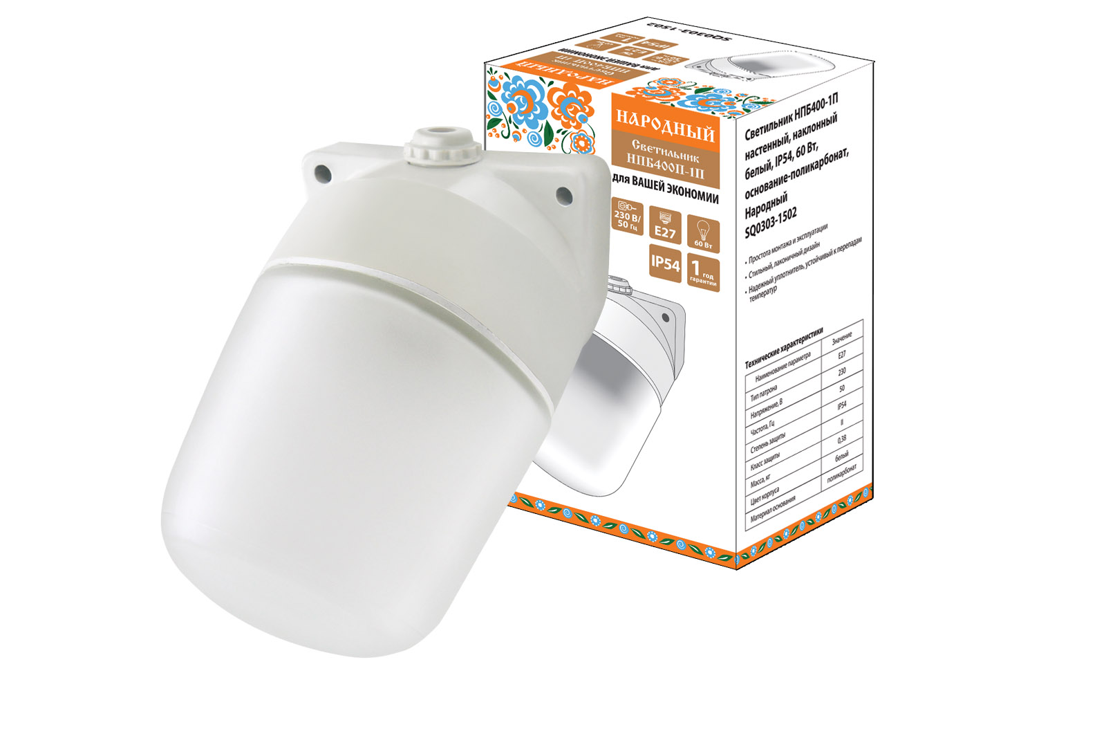 Светильник НПБ400-1П настенный, наклонный белый, IP54, 60 Вт, основание-поликарбонат, Народный доступен в интернет‑магазине ВольтМаркет в Орске. Покупая у нас, вы получаете дополнительные преимущества: