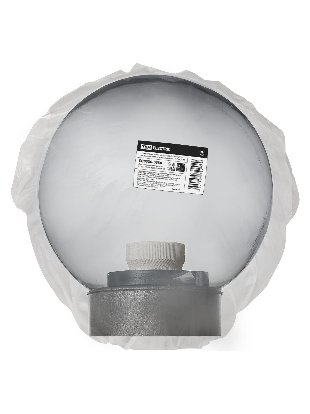 Светильник НТУ 03- 60-162 шар d=160 мм IP54 (дымчатый ПММА, основание плоское ПК, Е27) TDM доступен в интернет‑магазине ВольтМаркет в Орске. Покупая у нас, вы получаете дополнительные преимущества: