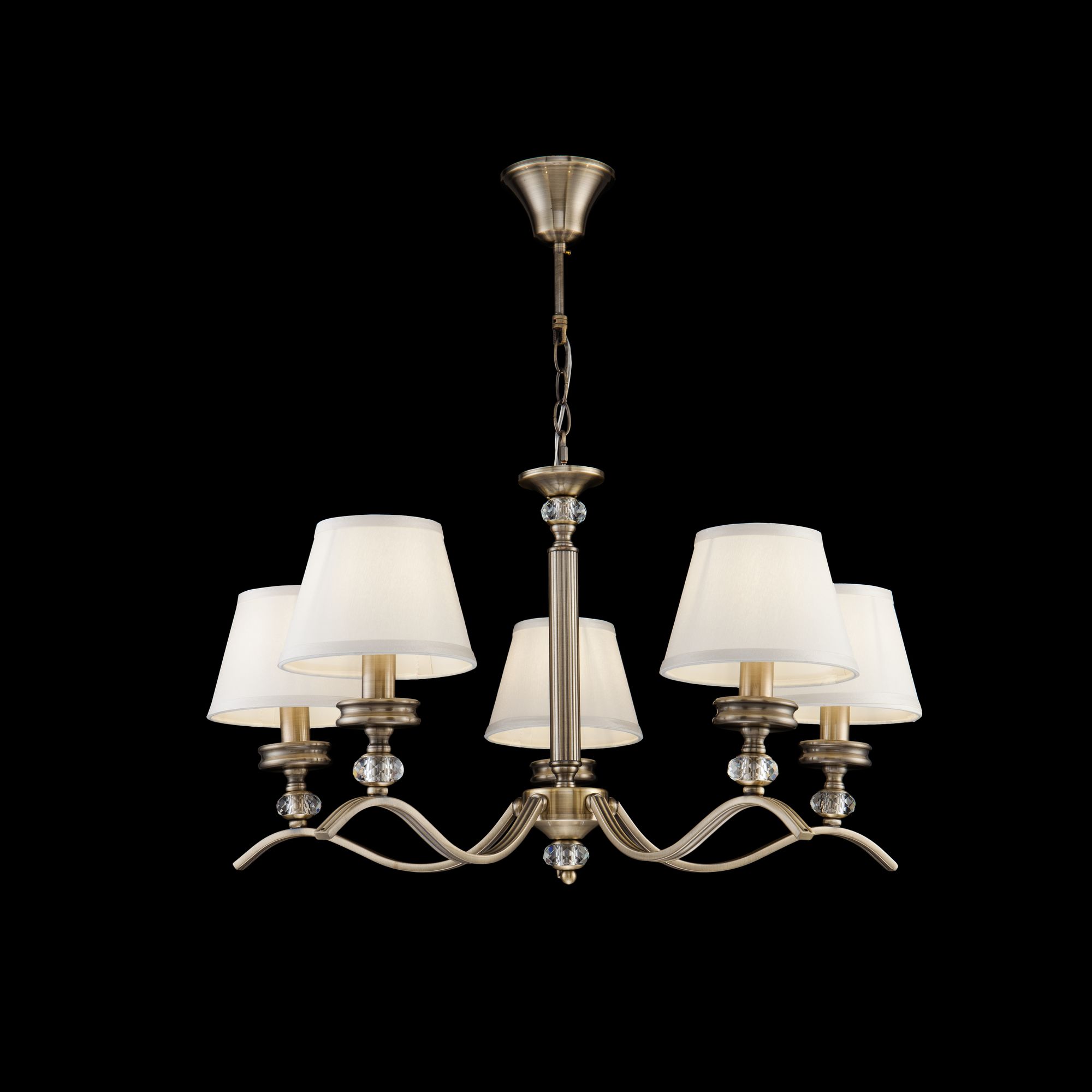 Люстры с диммированием позволяют регулировать яркость освещения с помощью специального диммера. Это удобно для создания разной атмосферы в помещении — от яркого рабочего света до мягкого уютного.