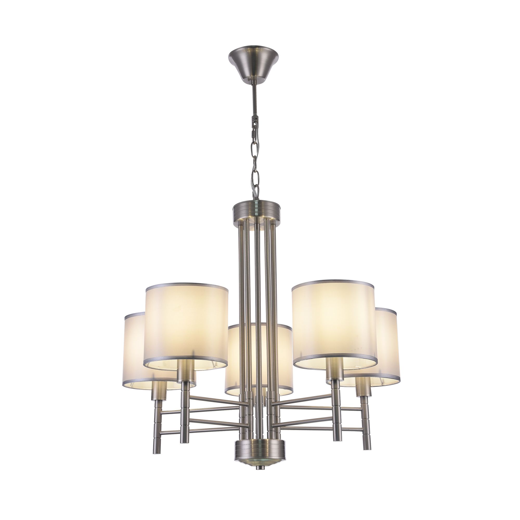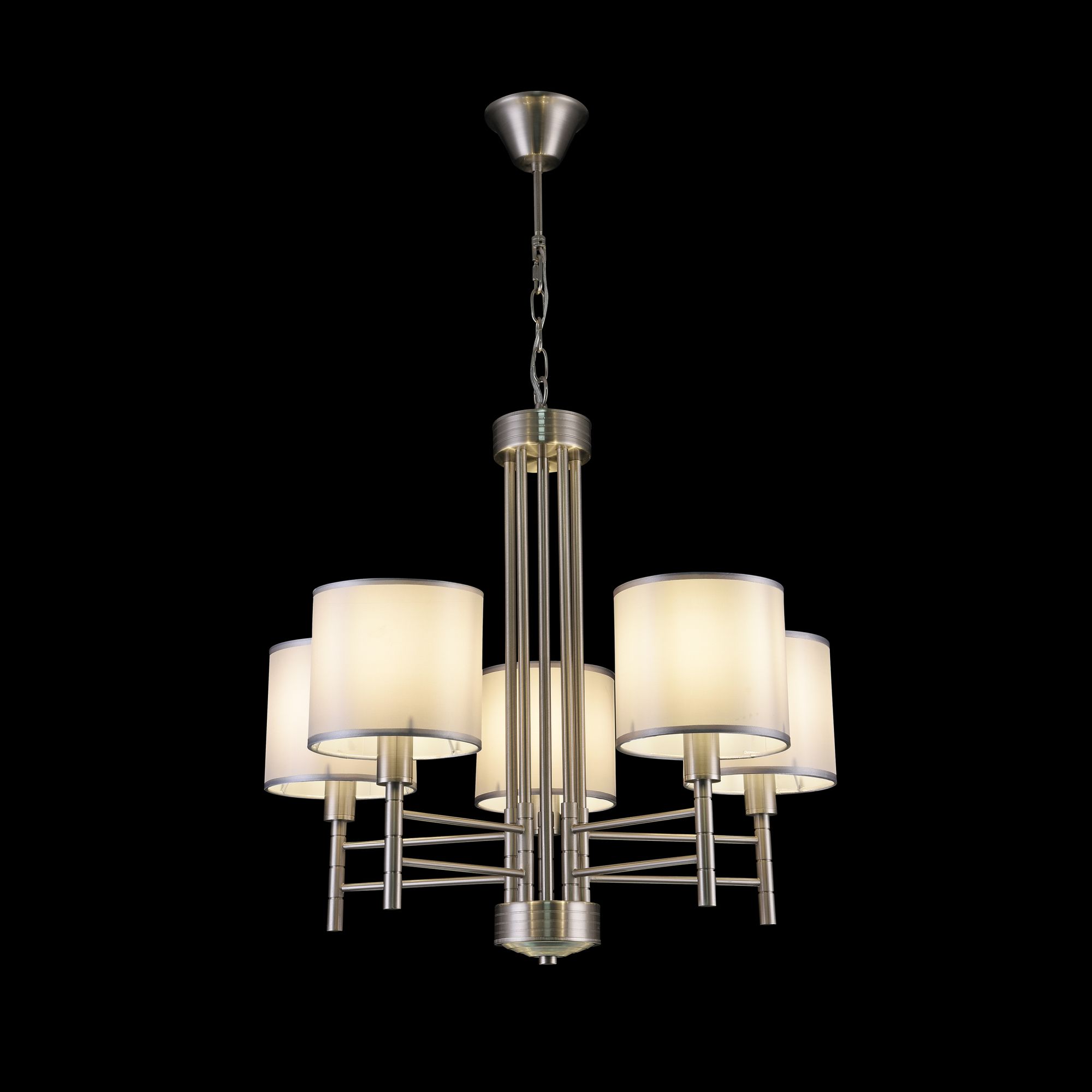Люстры с диммированием позволяют регулировать яркость освещения с помощью специального диммера. Это удобно для создания разной атмосферы в помещении — от яркого рабочего света до мягкого уютного.