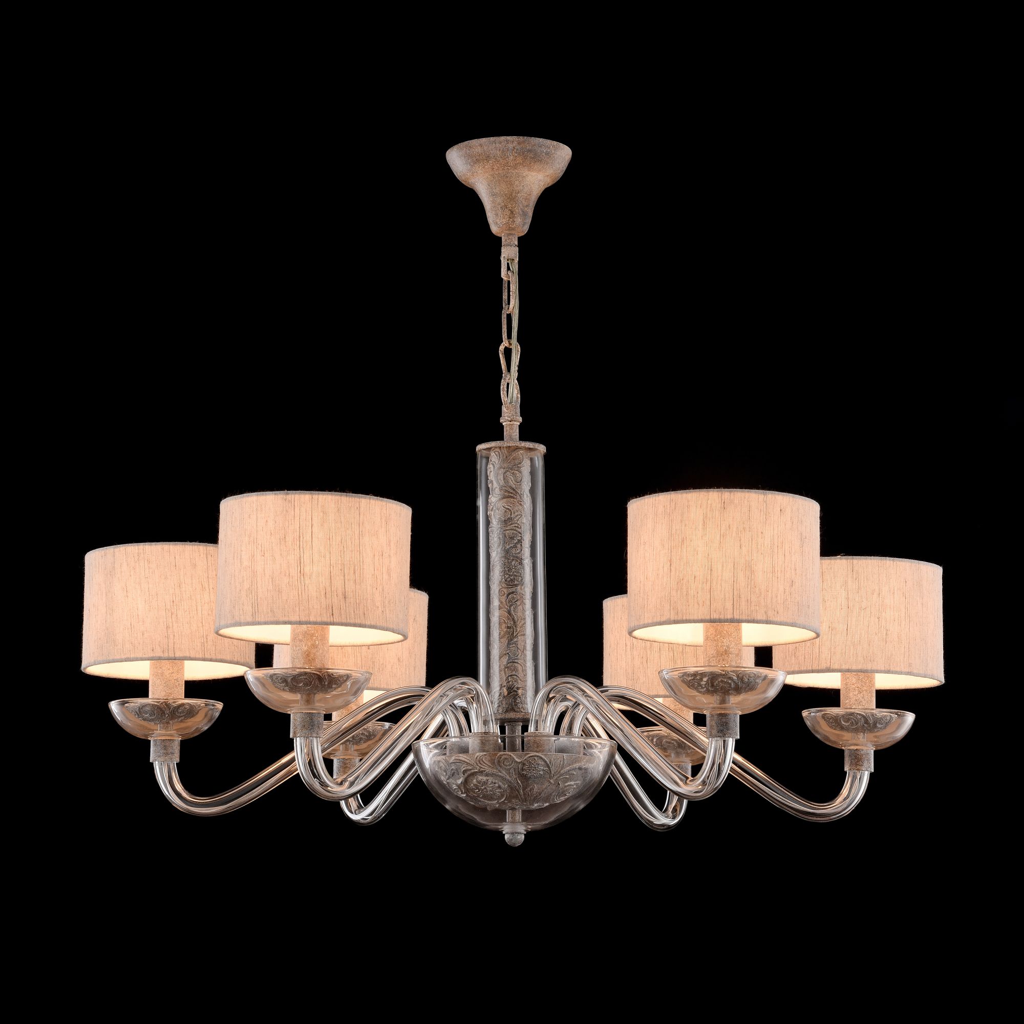 Люстры с диммированием позволяют регулировать яркость освещения с помощью специального диммера. Это удобно для создания разной атмосферы в помещении — от яркого рабочего света до мягкого уютного.