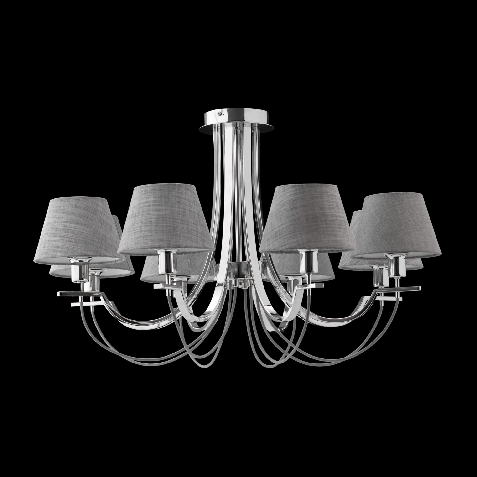 Люстры с диммированием позволяют регулировать яркость освещения с помощью специального диммера. Это удобно для создания разной атмосферы в помещении — от яркого рабочего света до мягкого уютного.