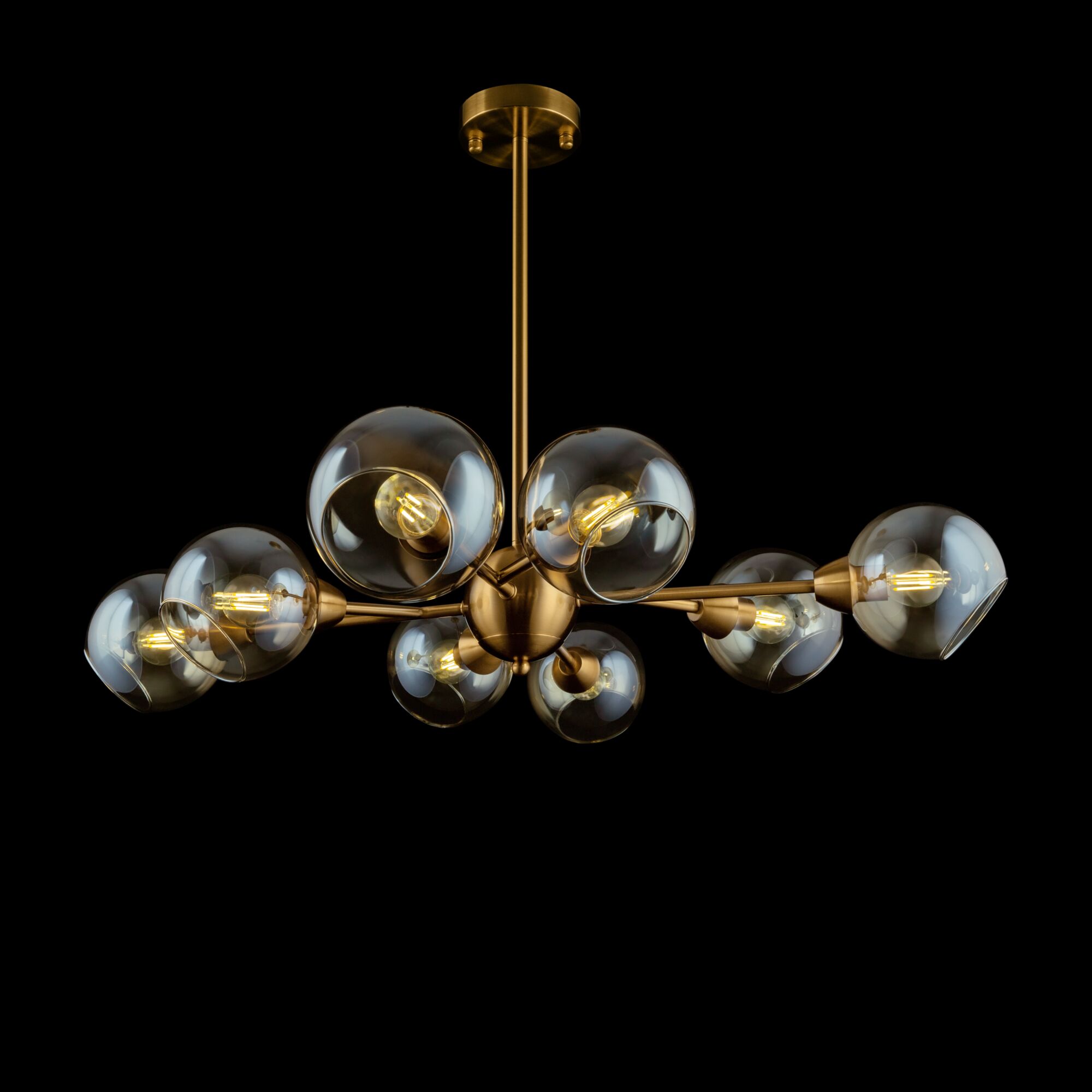 Люстры с диммированием позволяют регулировать яркость освещения с помощью специального диммера. Это удобно для создания разной атмосферы в помещении — от яркого рабочего света до мягкого уютного.