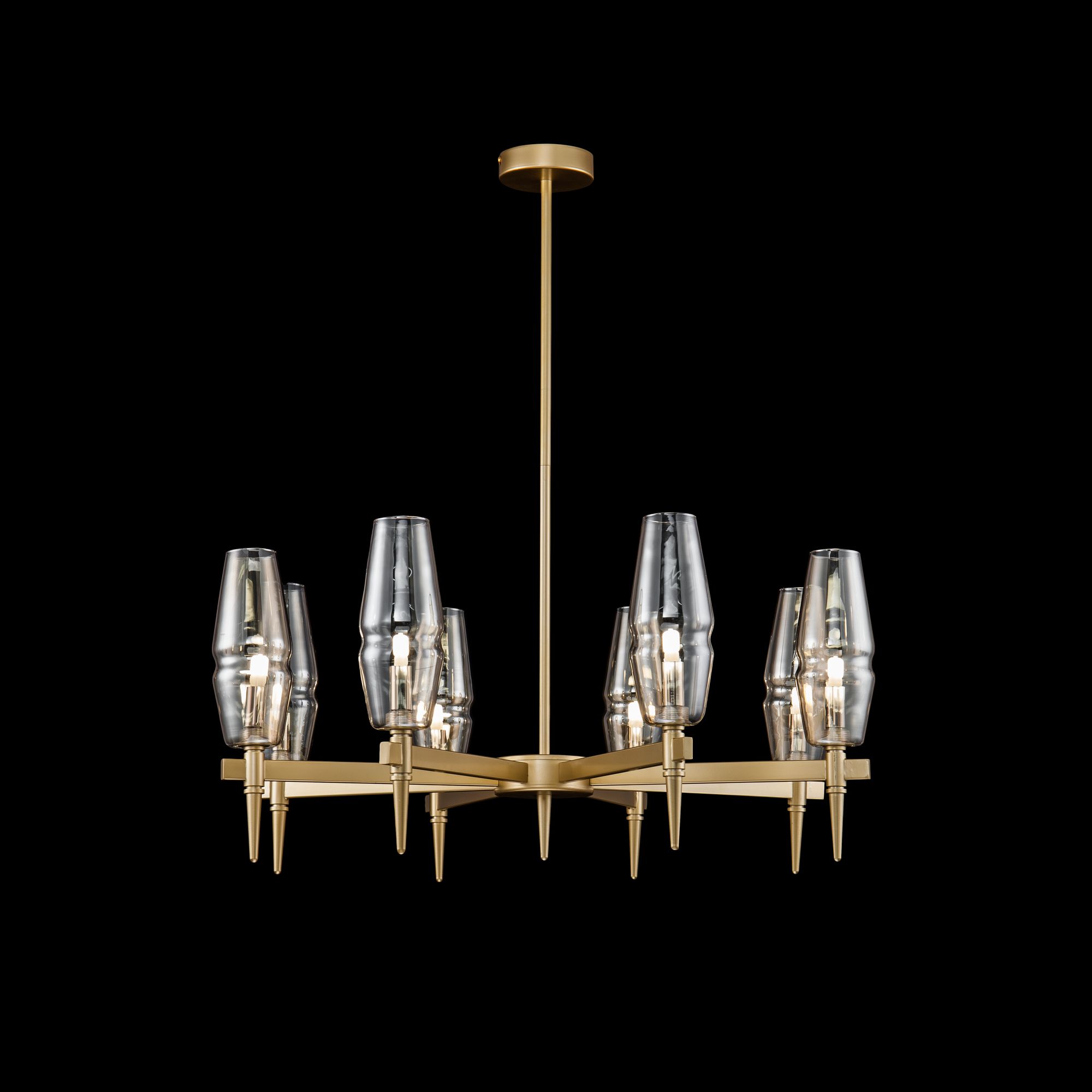 Люстры с диммированием позволяют регулировать яркость освещения с помощью специального диммера. Это удобно для создания разной атмосферы в помещении — от яркого рабочего света до мягкого уютного.