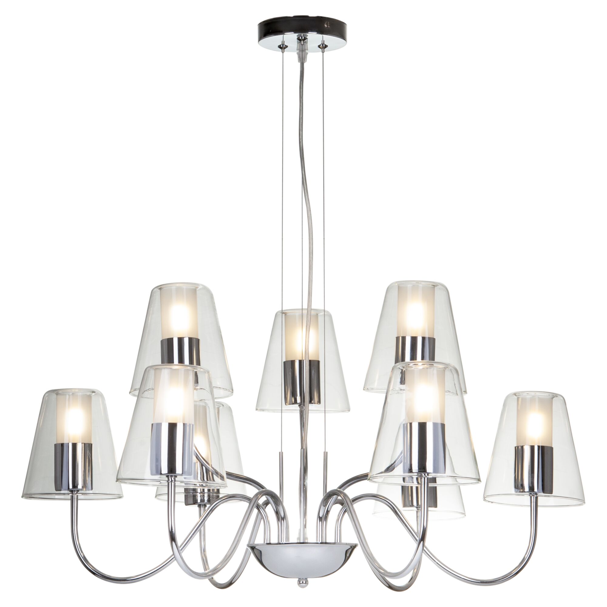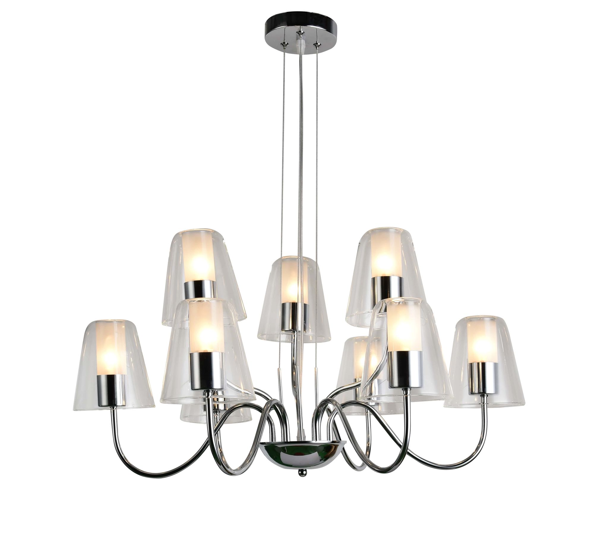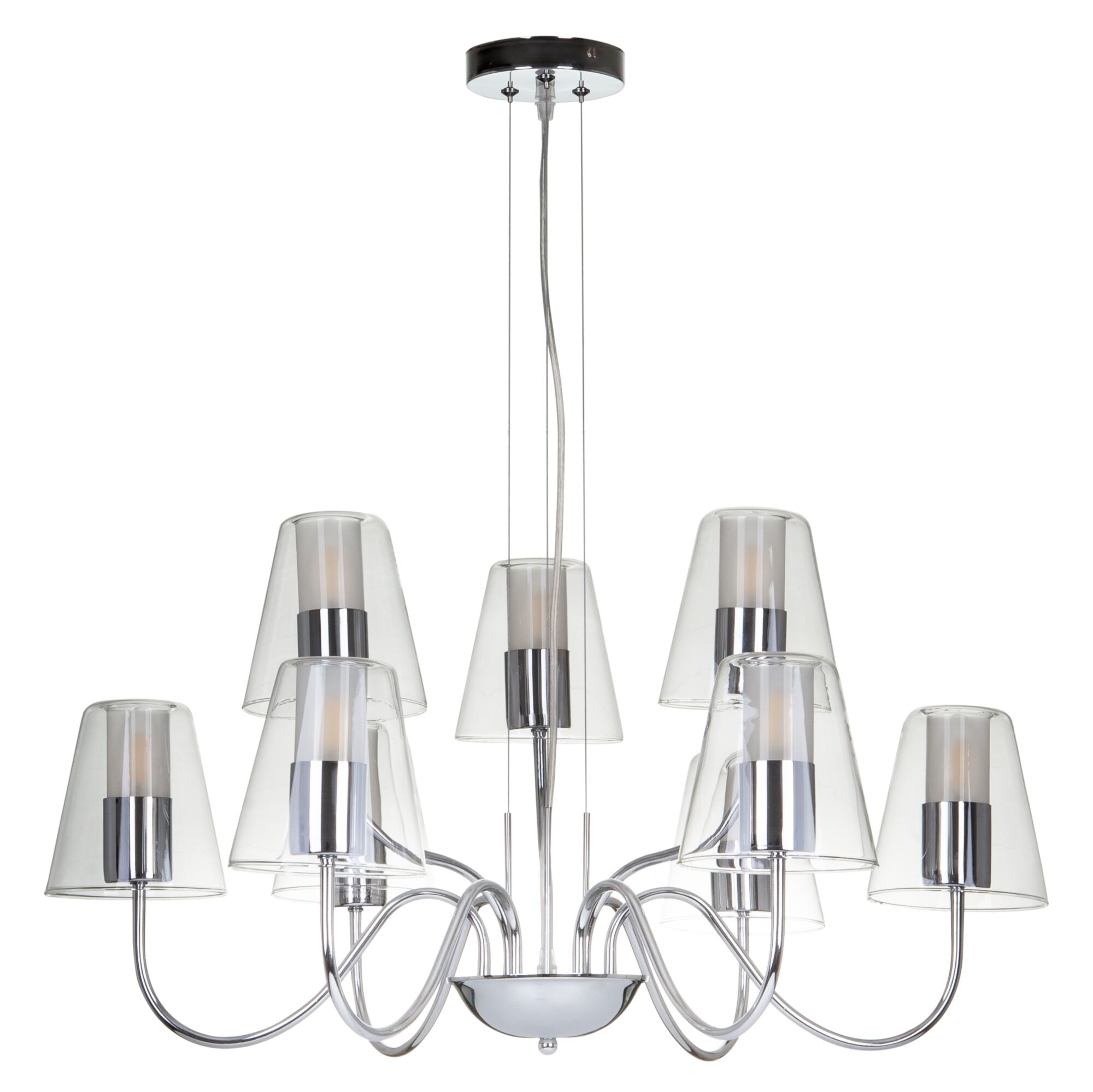 Люстры с диммированием позволяют регулировать яркость освещения с помощью специального диммера. Это удобно для создания разной атмосферы в помещении — от яркого рабочего света до мягкого уютного.