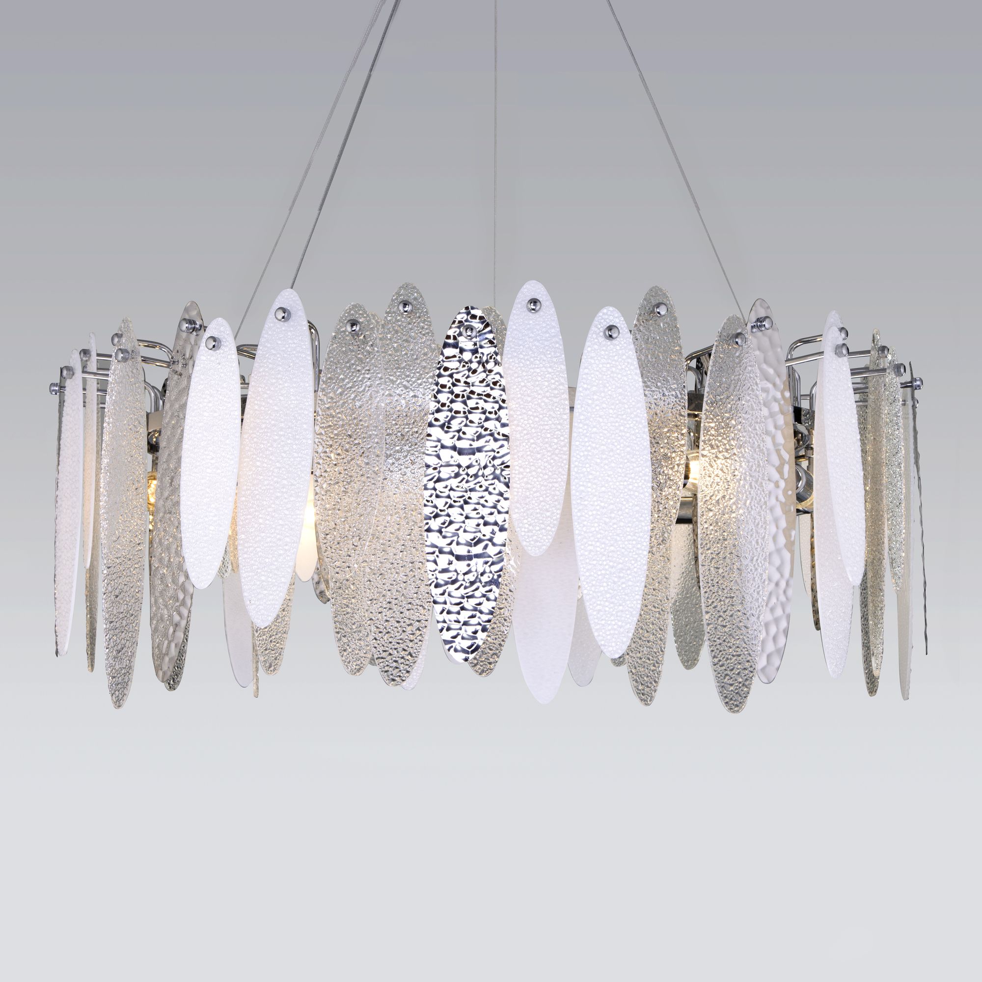Подвесная люстра с фактурным стеклом 10*E14 60Вт хром IP20 Canaria (324/10 хром) Bogate's в Орске