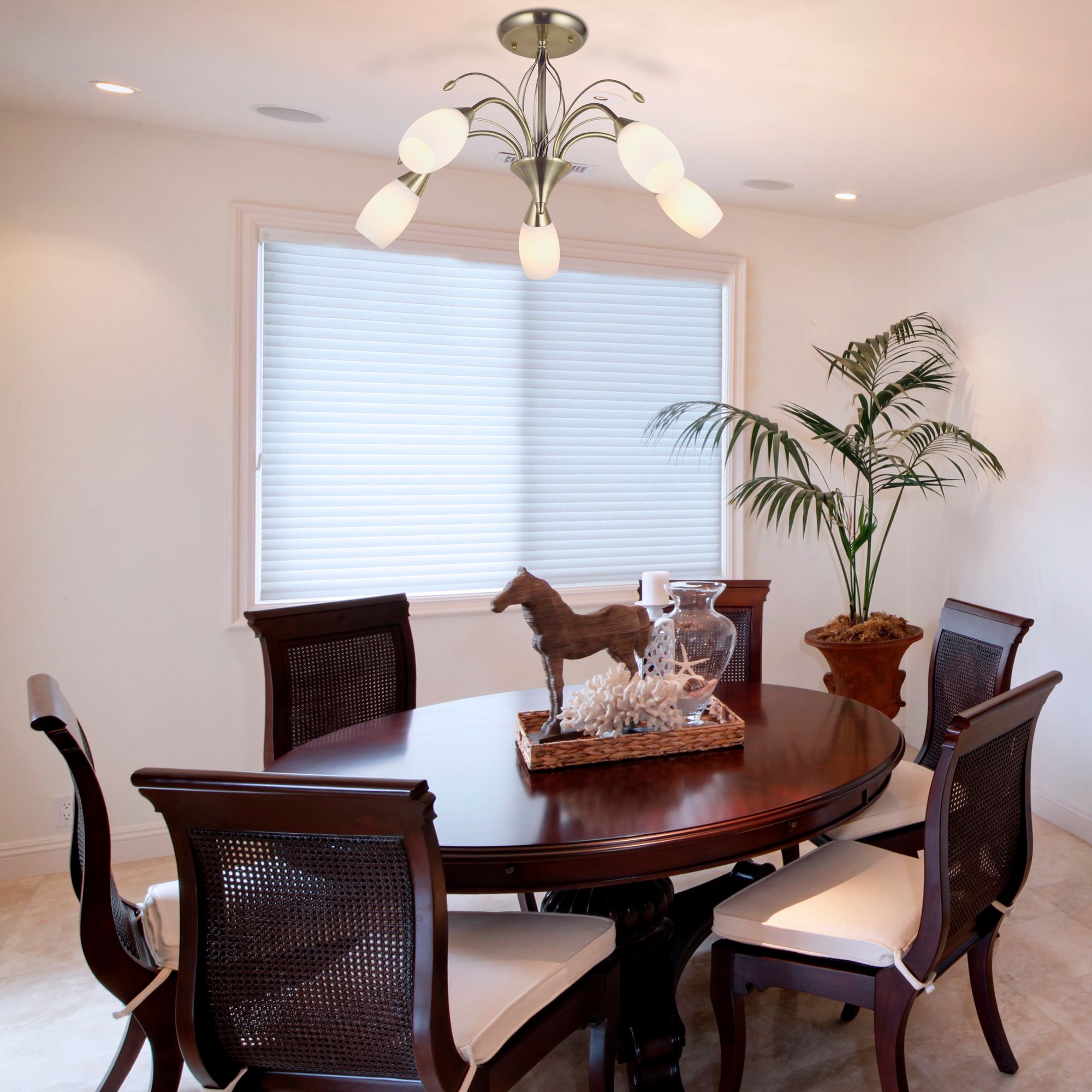 Люстры с диммированием позволяют регулировать яркость освещения с помощью специального диммера. Это удобно для создания разной атмосферы в помещении — от яркого рабочего света до мягкого уютного.
