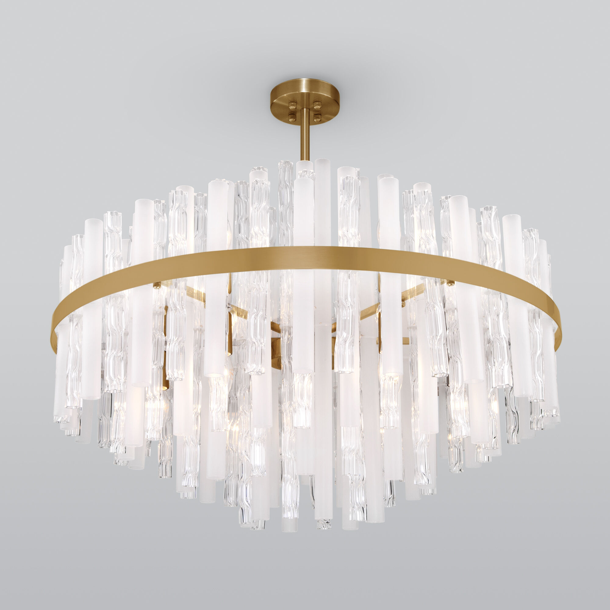 Люстры с диммированием позволяют регулировать яркость освещения с помощью специального диммера. Это удобно для создания разной атмосферы в помещении — от яркого рабочего света до мягкого уютного.