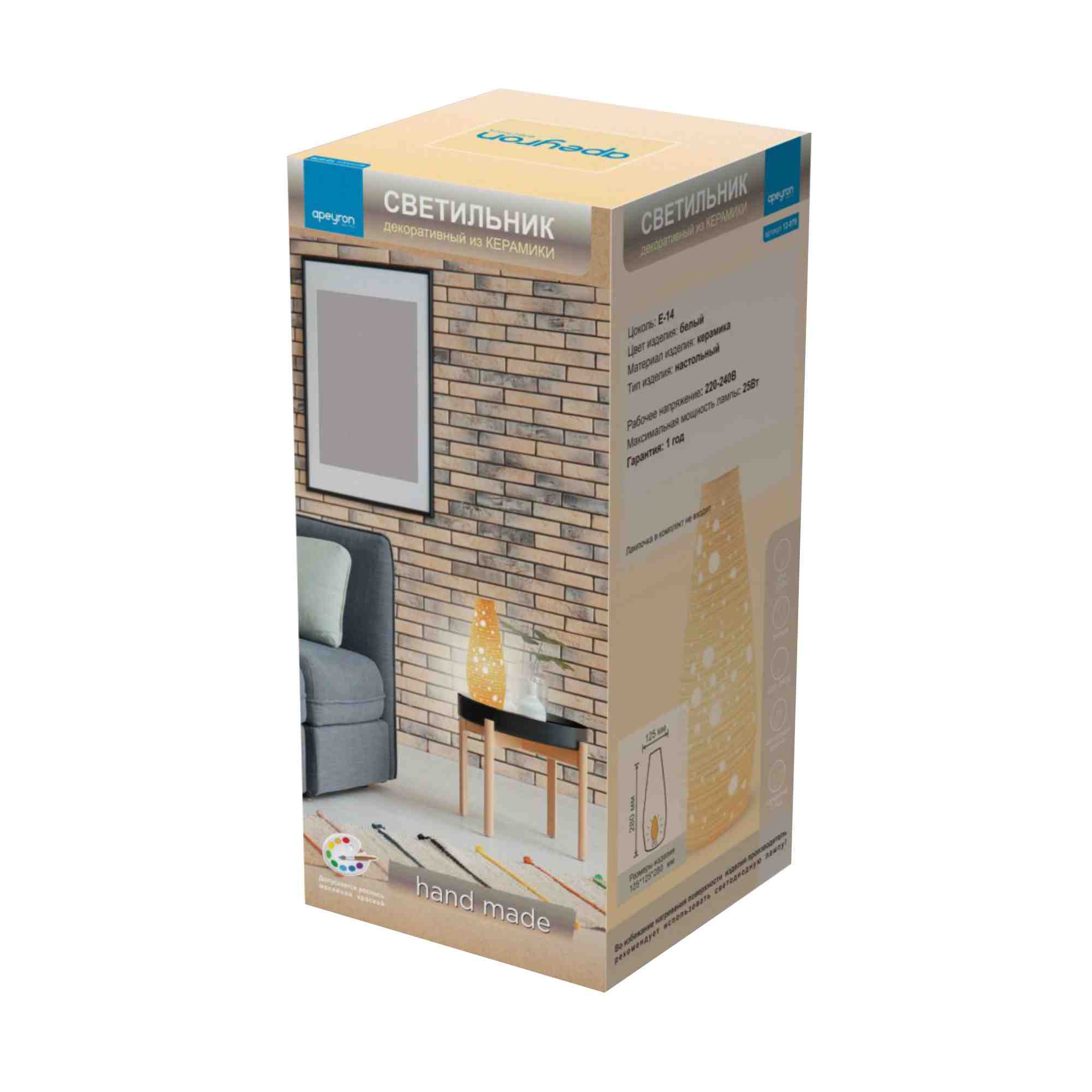 12-079 Светильник декоративный, настольный, "Прикроватный", керамический, Е14 25Вт, 220В, размер: 12.5*12.5*28 см. Apeyron доступен в интернет‑магазине ВольтМаркет в Орске. Покупая у нас, вы получаете дополнительные преимущества: