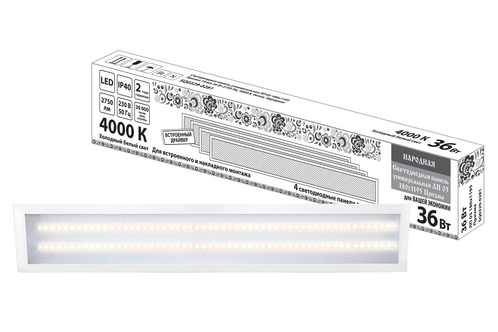 Светодиодная панель универсальная ЛП 03 180х1195 Призма 19 мм 36 Вт 2750 Лм, 4000 К, белая, Народная доступен в интернет‑магазине ВольтМаркет в Орске. Покупая у нас, вы получаете дополнительные преимущества: