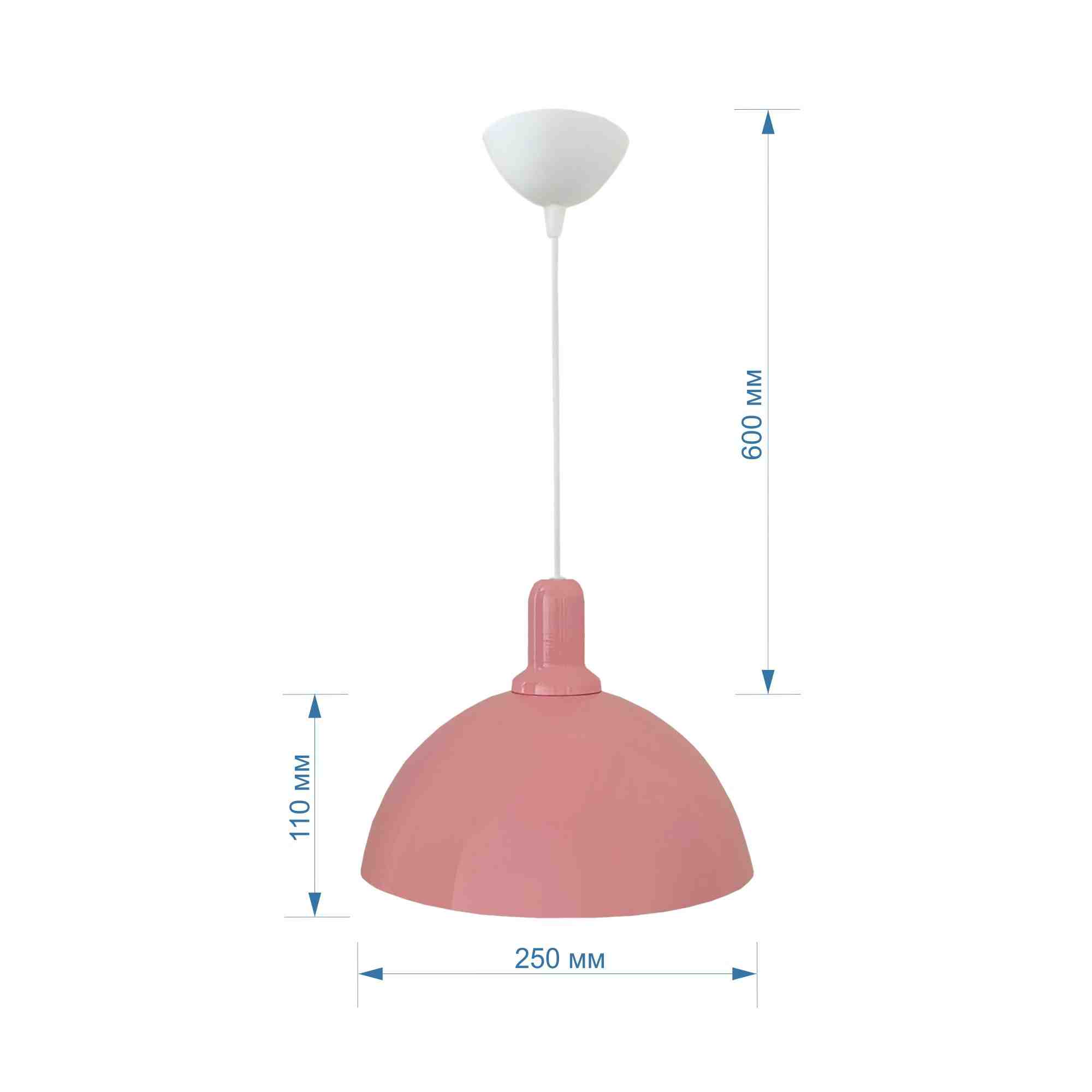 12-104 (2511/1 Розовый)Светильник декоративный, подвесной, металлический, Е27 15Вт, 230В, розовый, шнур белый, 600мм, крепление на крючок, Ø250х110мм, в Орске