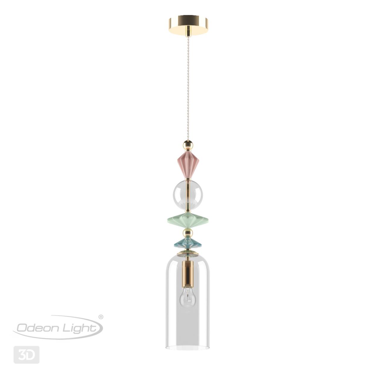Подвес E14 1*40W 4855/1 BIZET золото/раноцветн./керамика/стекло ODEON LIGHT в Орске