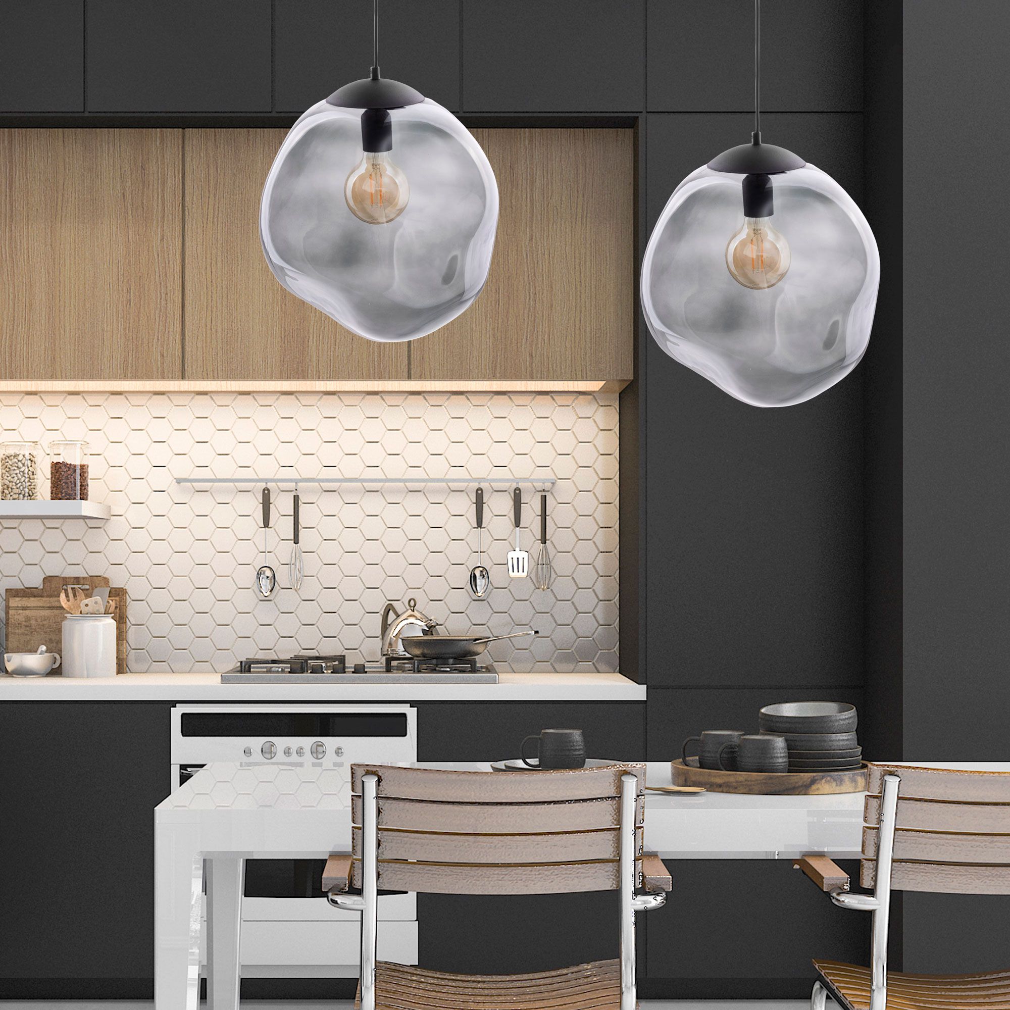Для кухни рекомендуется выбирать светильники с ярким и равномерным освещением, устойчивые к влаге и пару. Хорошо подойдут модели с регулируемой высотой подвеса и направленным светом, чтобы освещать рабочие поверхности.