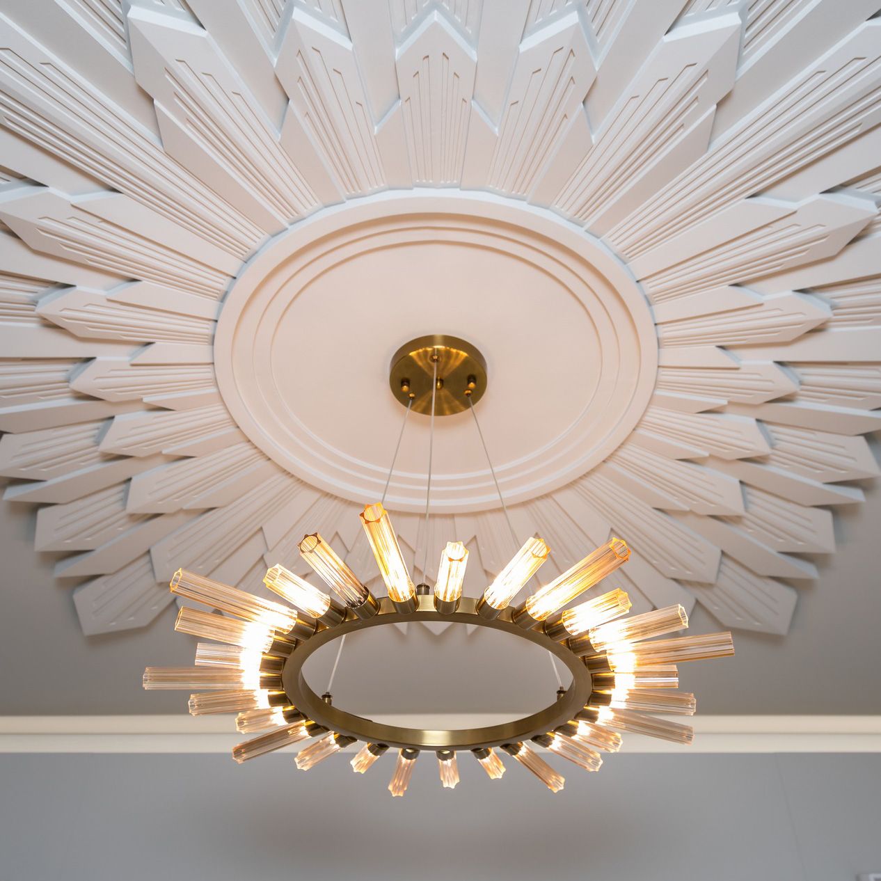 Размер светильника должен соответствовать площади комнаты и высоте потолков. Обычно диаметр светильника в сантиметрах сопоставляют с суммой длины и ширины комнаты в метрах. Высота подвеса не должна мешать передвижению и визуально гармонировать с интерьером.