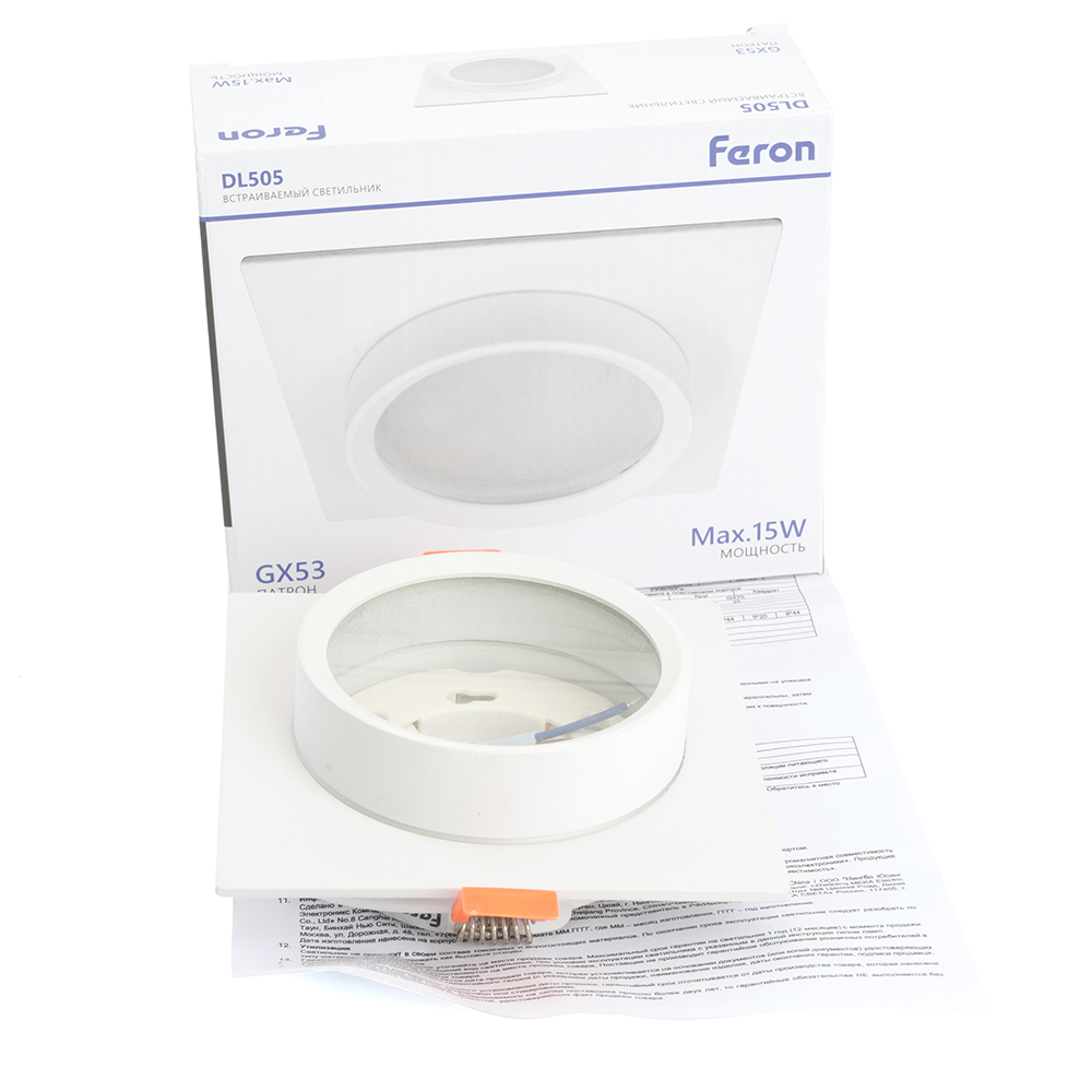 Светильник потолочный встраиваемый, 15W 230V GX53, IP44, белый, квадрат, без лампы, DL505 Feron доступен в интернет‑магазине ВольтМаркет в Орске. Покупая у нас, вы получаете дополнительные преимущества: