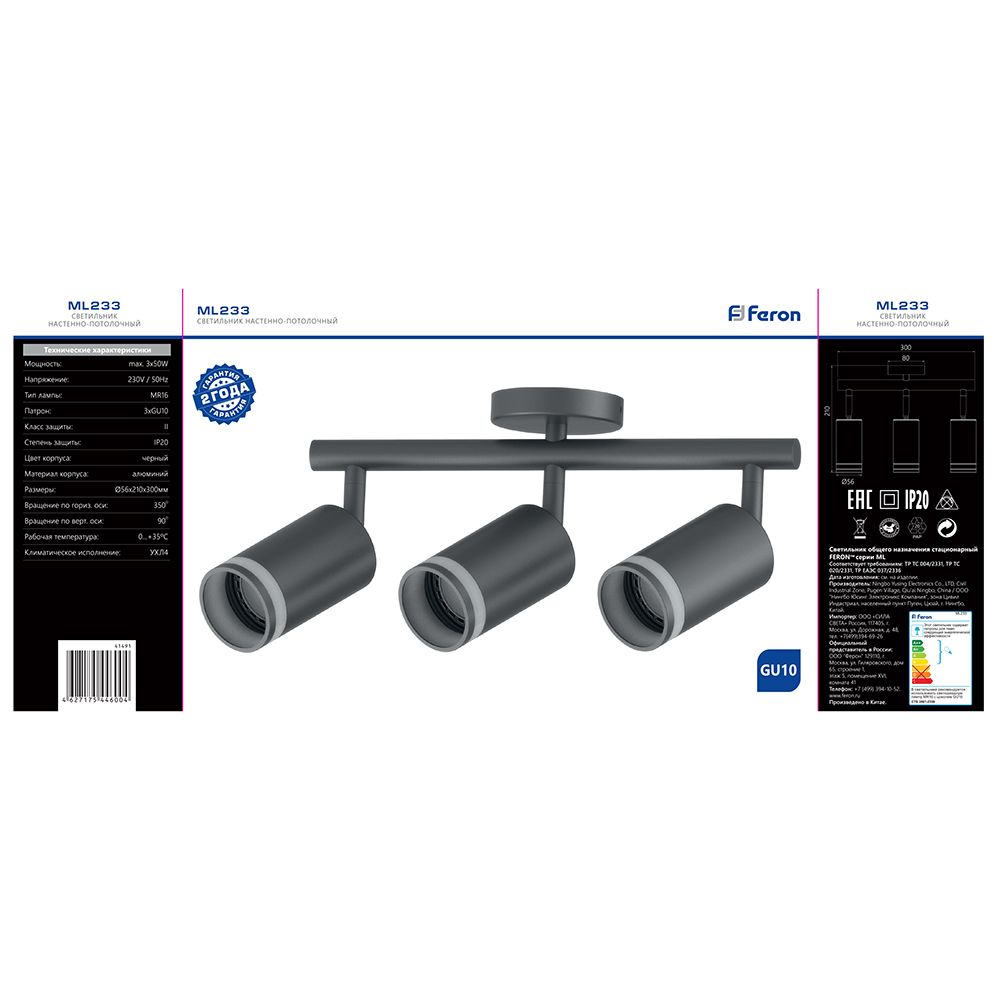 Светильник Feron ML233 настенно-потолочный под лампу GU10, черный доступен в интернет‑магазине ВольтМаркет в Орске. Покупая у нас, вы получаете дополнительные преимущества: