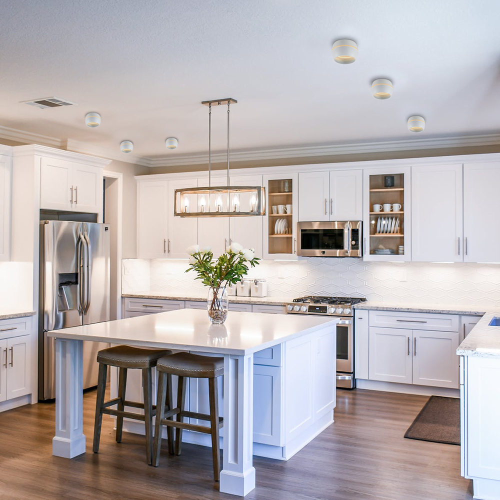 Для кухни рекомендуется выбирать споты с ярким светом и возможностью регулировки направления. Лучше предпочесть модели с защитой от влаги, особенно вблизи раковины и плиты.