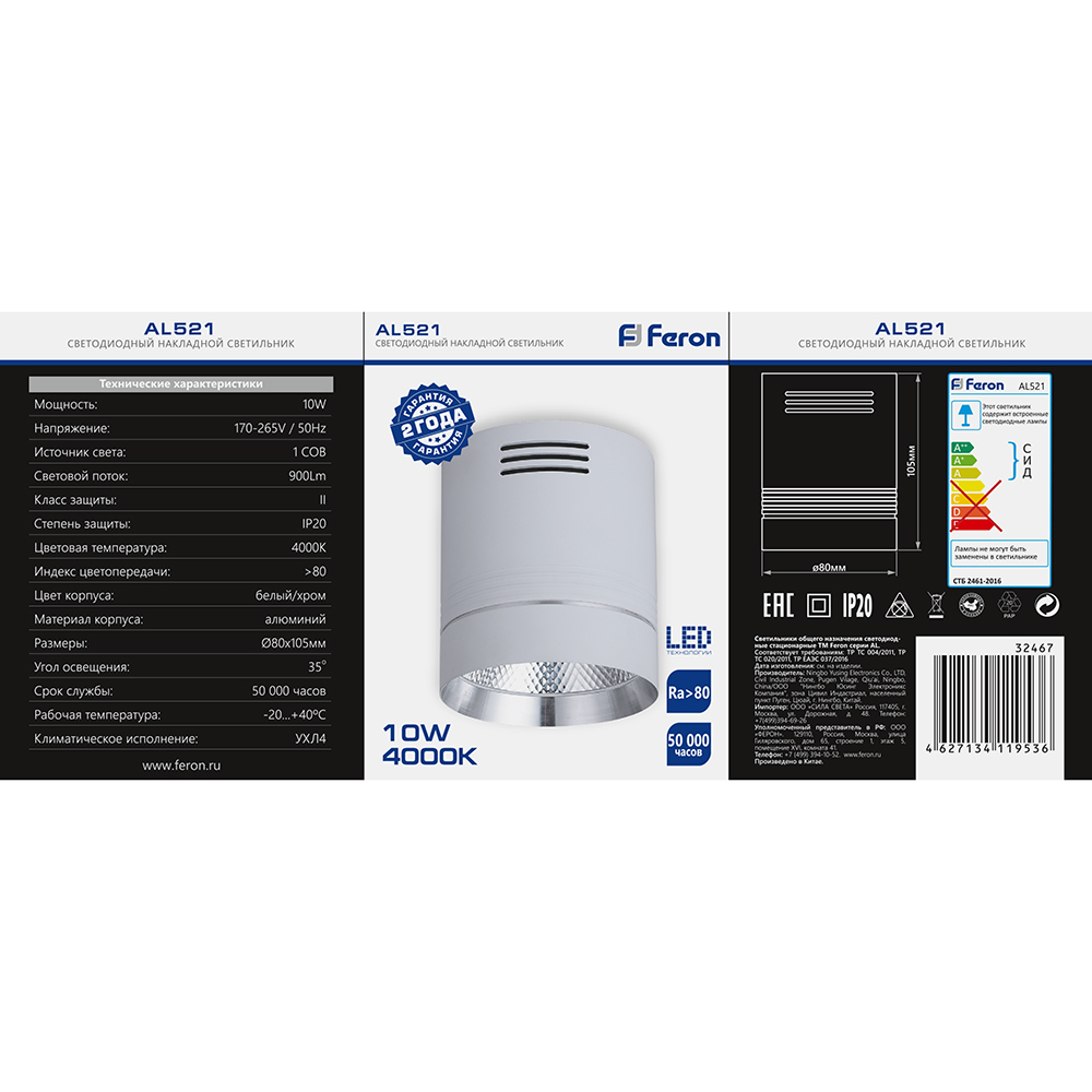 Светодиодный светильник Feron AL521 накладной 10W 4000K белый с хром кольцом доступен в интернет‑магазине ВольтМаркет в Орске. Покупая у нас, вы получаете дополнительные преимущества: