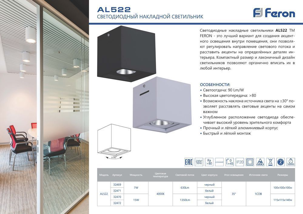 Светодиодный светильник Feron AL522 накладной 7W 4000K белый поворотный доступен в интернет‑магазине ВольтМаркет в Орске. Покупая у нас, вы получаете дополнительные преимущества: