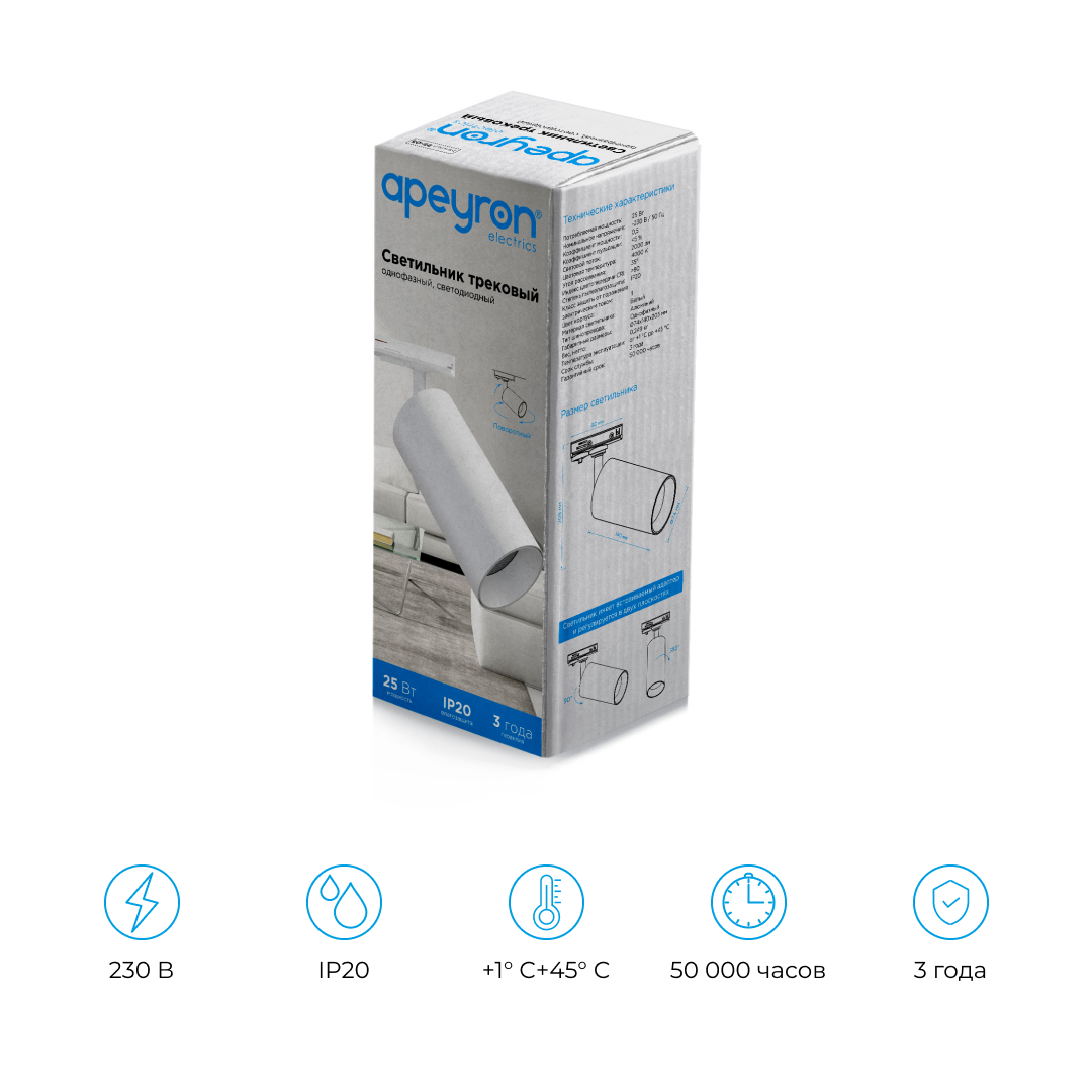25-05 Светильник светодиодный, трековый, однофазный, 25Вт, 230В/50Гц, 2000лм, 4000К, 35°, IP20, Φ74х140х205мм, белый, алюминий, с адаптером Apeyron доступен в интернет‑магазине ВольтМаркет в Орске. Покупая у нас, вы получаете дополнительные преимущества:
