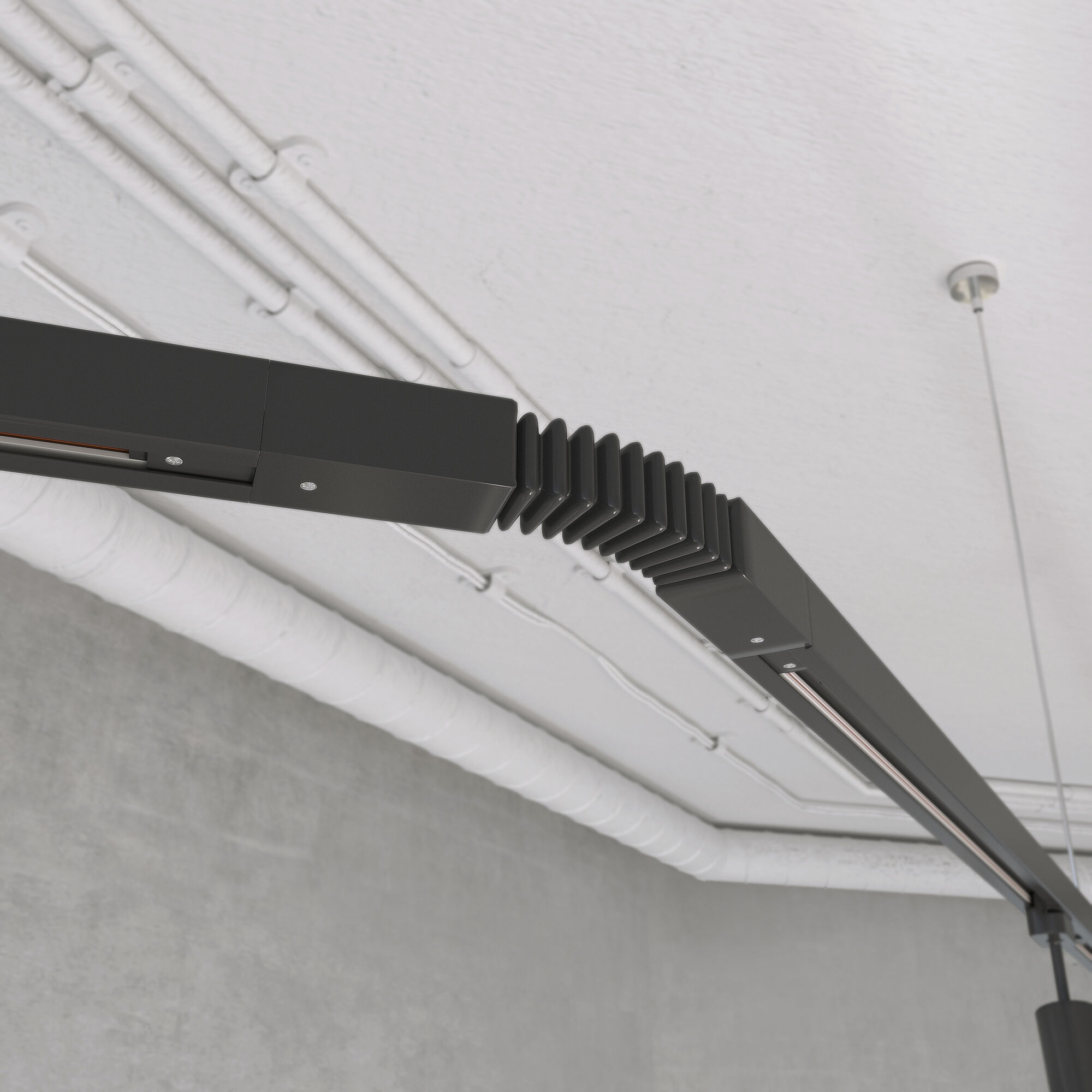 Шинопровод — это металлический профиль с встроенными токопроводящими шинами, по которым передается электроэнергия к трековым светильникам. Он служит основой для крепления и подключения светильников в системе внутреннего освещения.